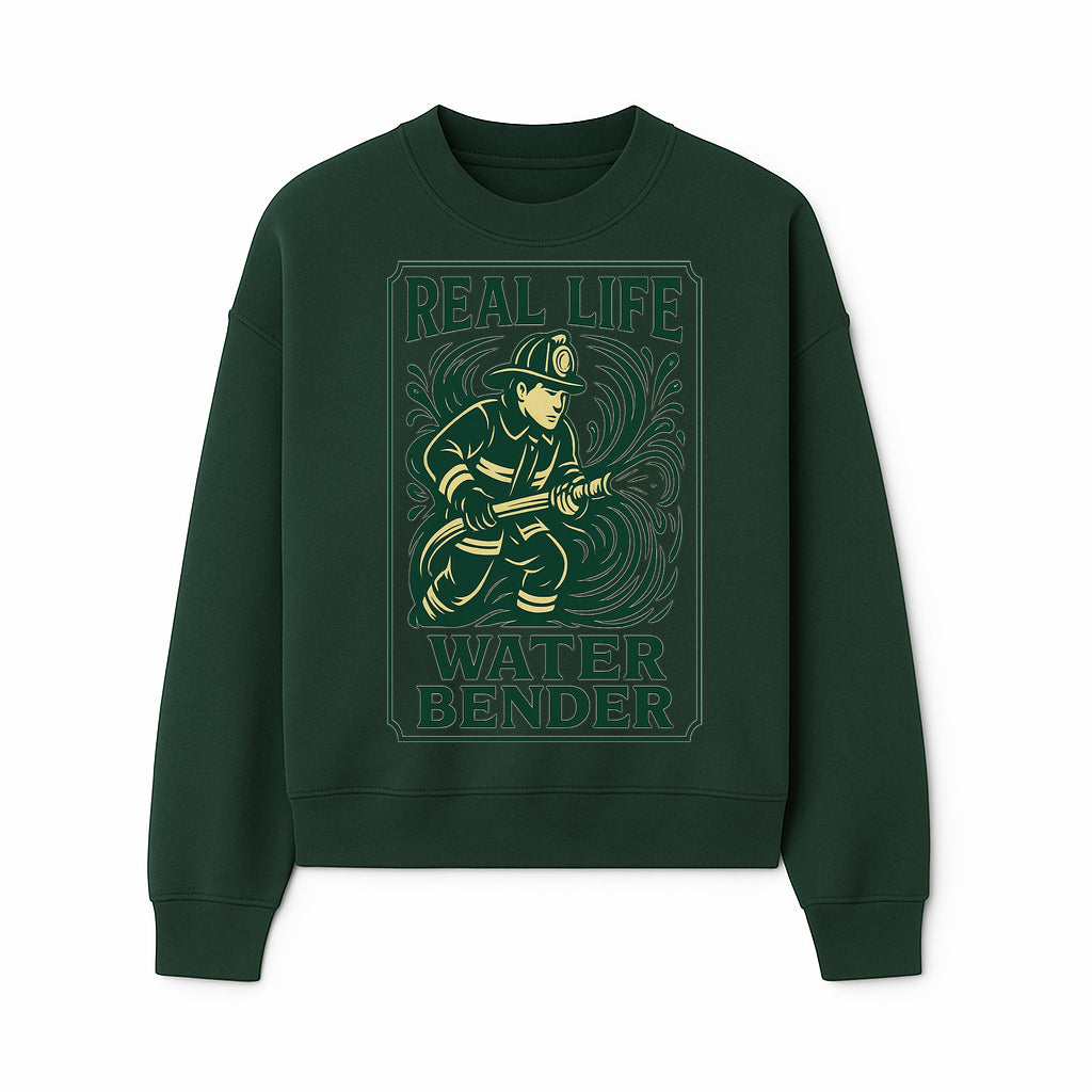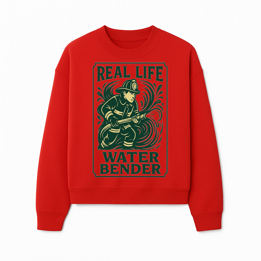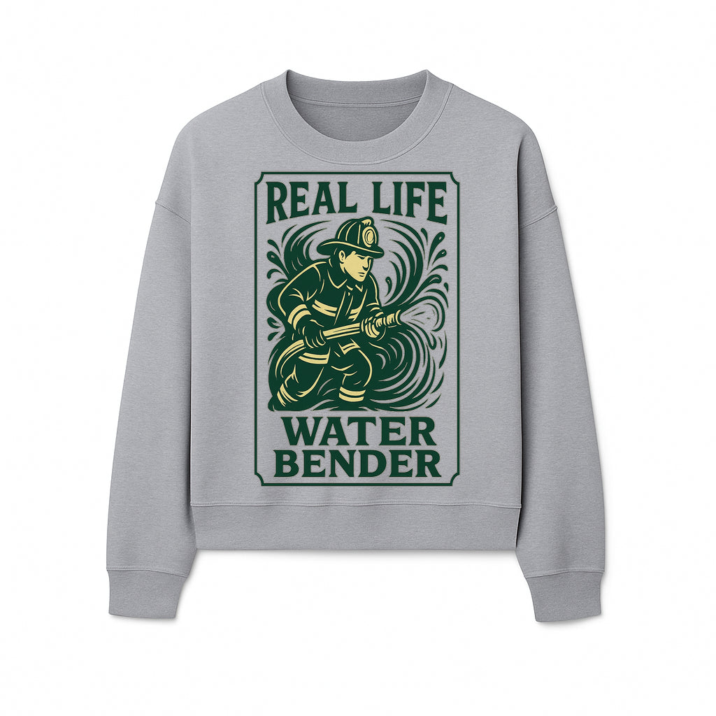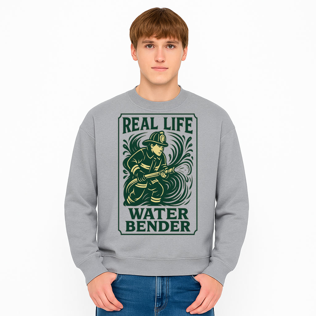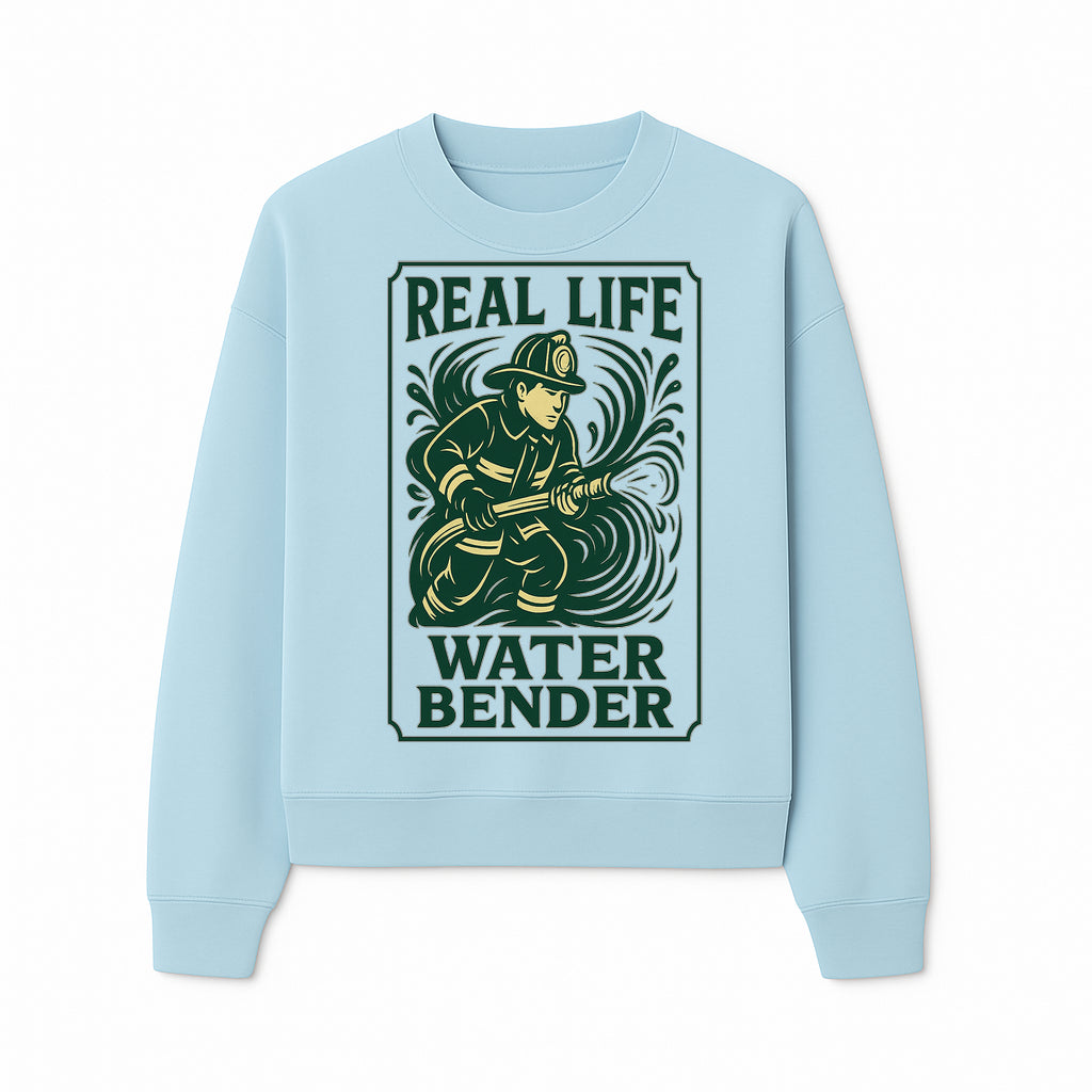Real Life Water Bender Firefighter Graphic T-Shirt | Fireman Humor Gifts | Cute Firefighter Apparel | Funny Firefighting Design - Sweatshirt