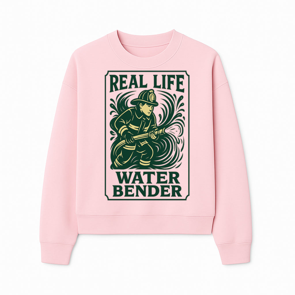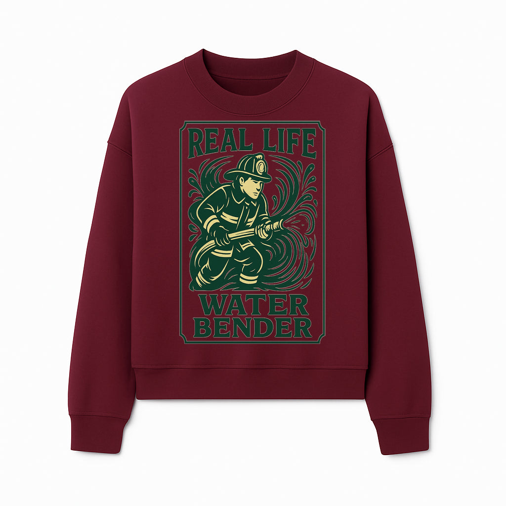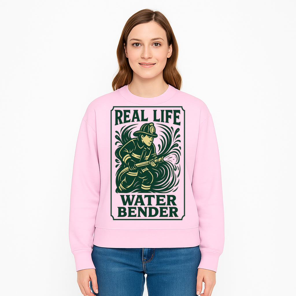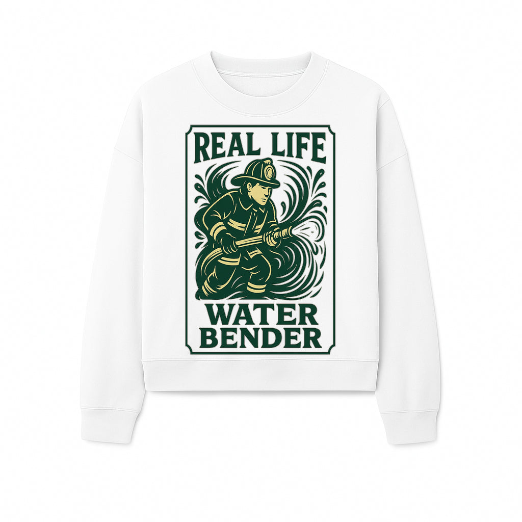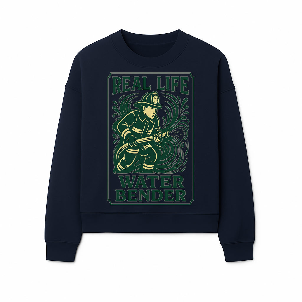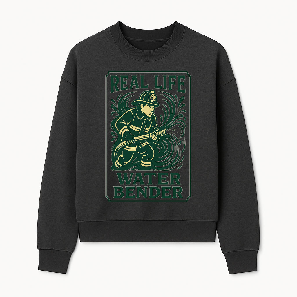 Real Life Water Bender Firefighter Graphic T-Shirt | Fireman Humor Gifts | Cute Firefighter Apparel | Funny Firefighting Design - Sweatshirt