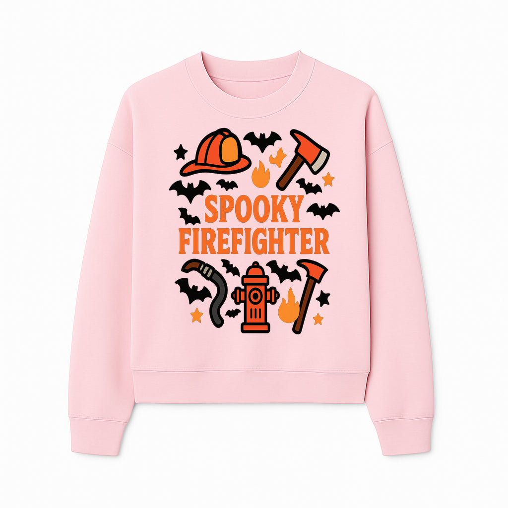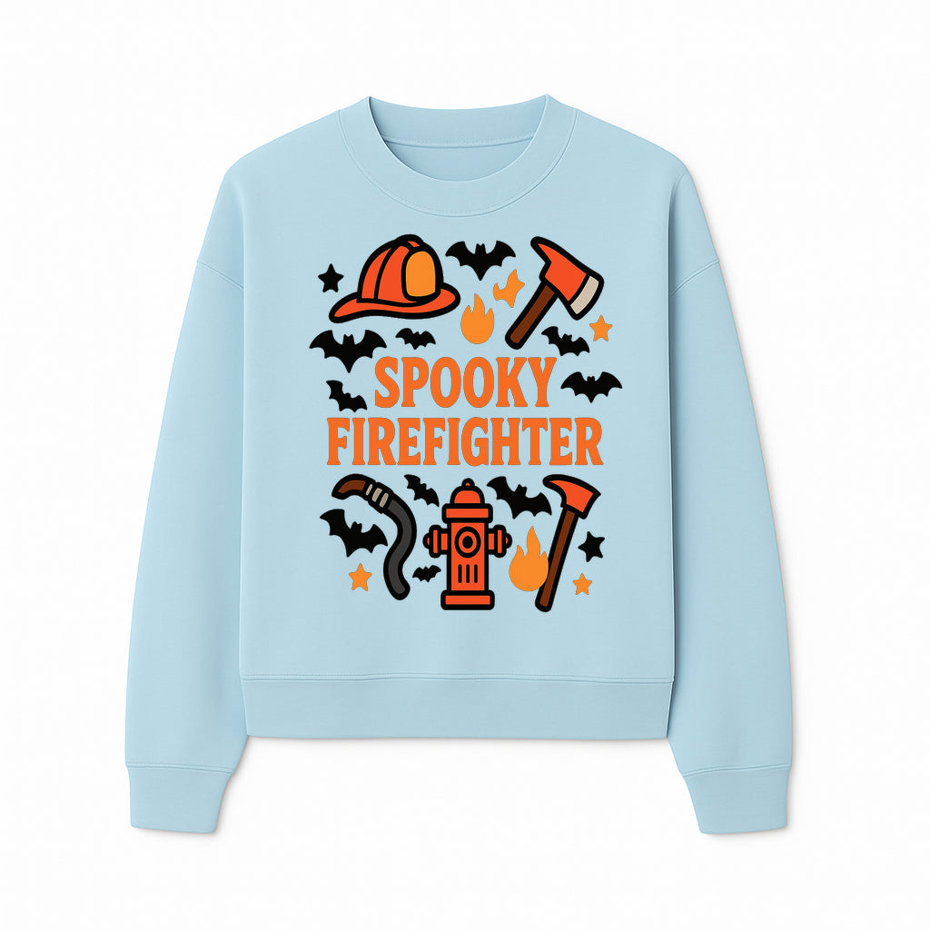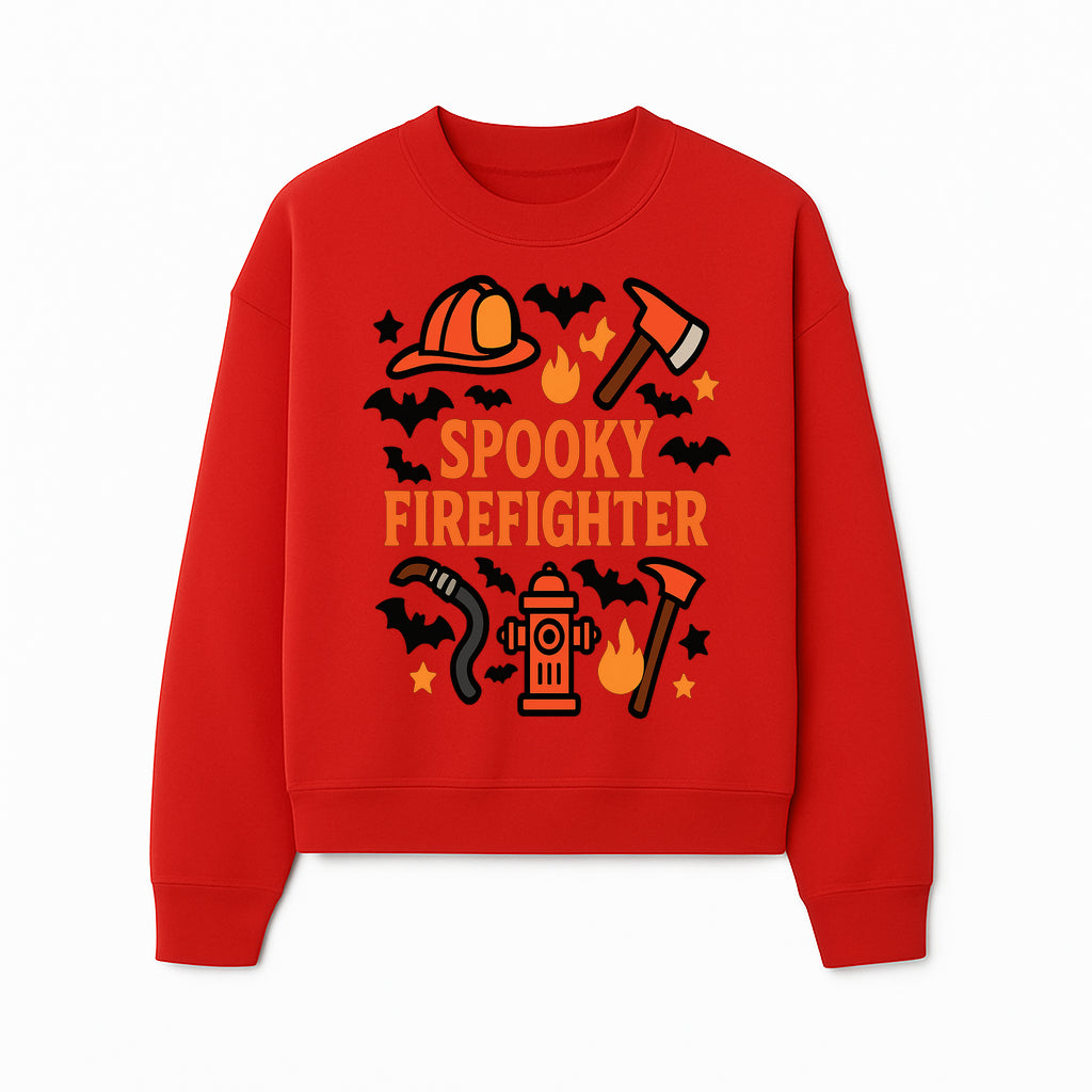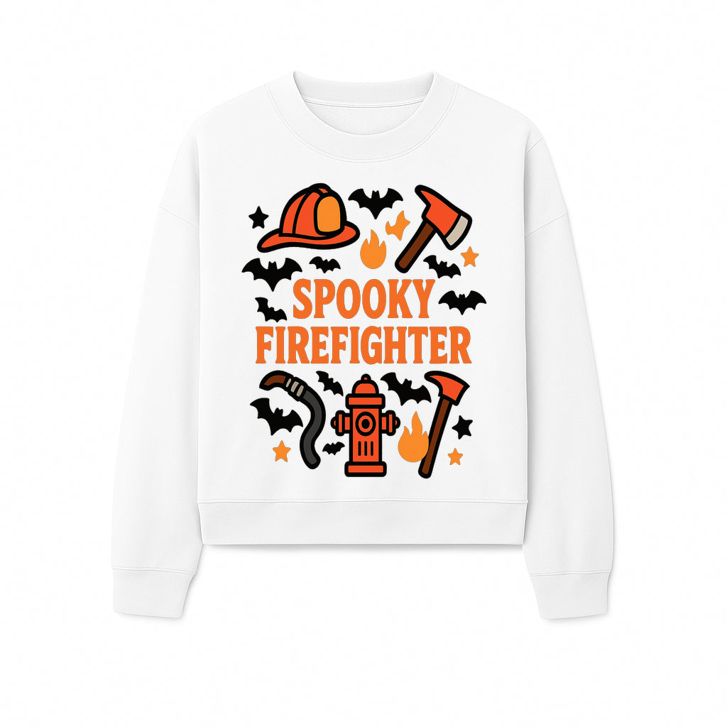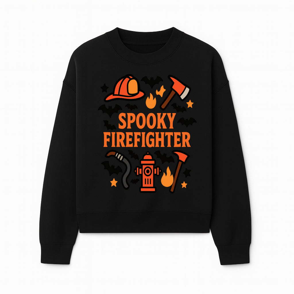 Spooky Firefighter Halloween Decor T-shirt | Cute Fireman Costume Graphic | Bat and Fire Hydrant Design - Sweatshirt
