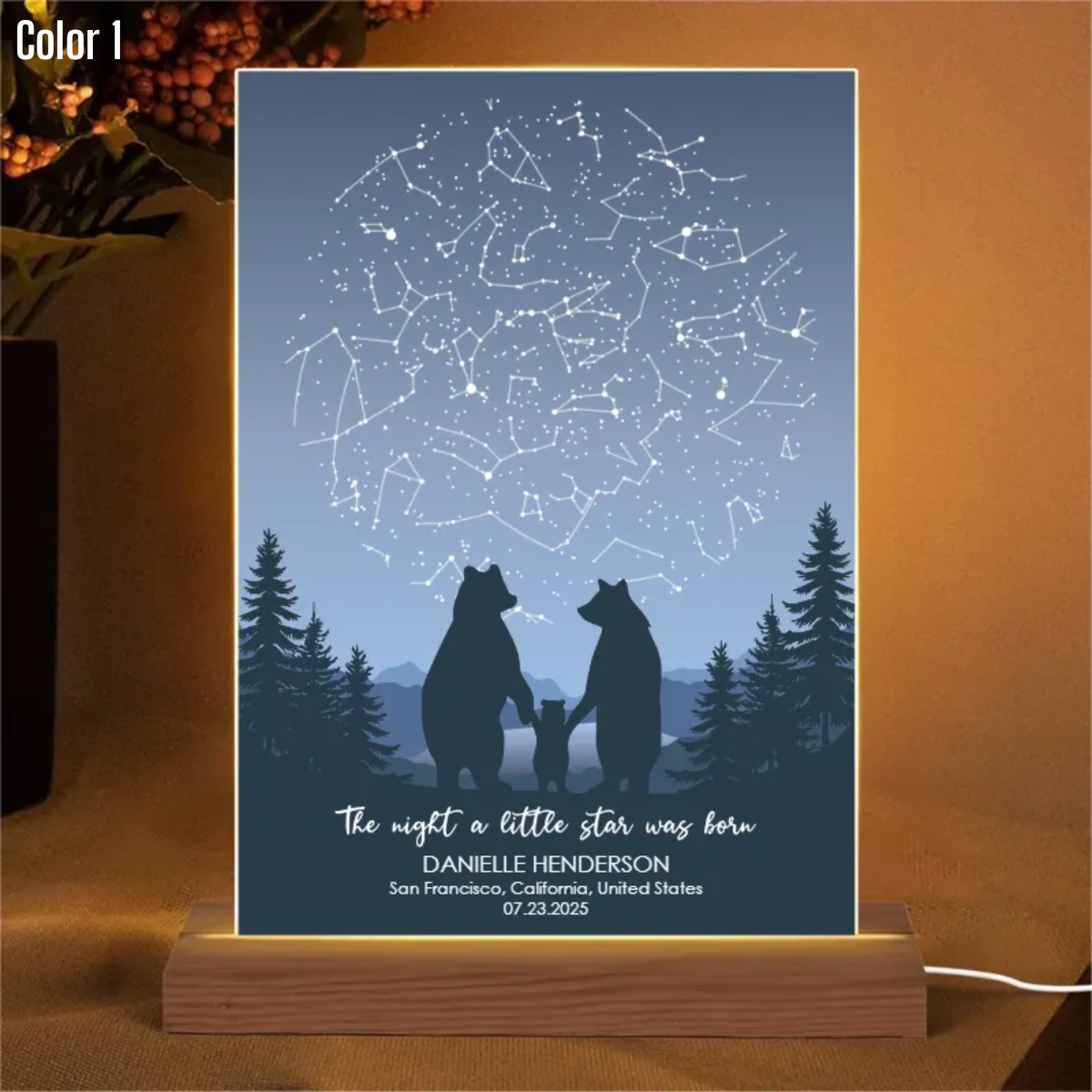 My mom loved this as her gift. I loved the color change and the way that names can go onto the frame. It is beautiful and amazing.
