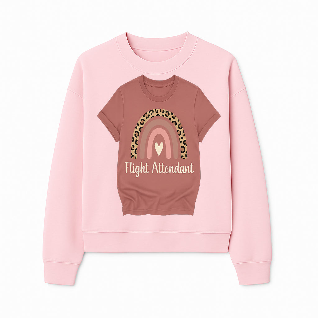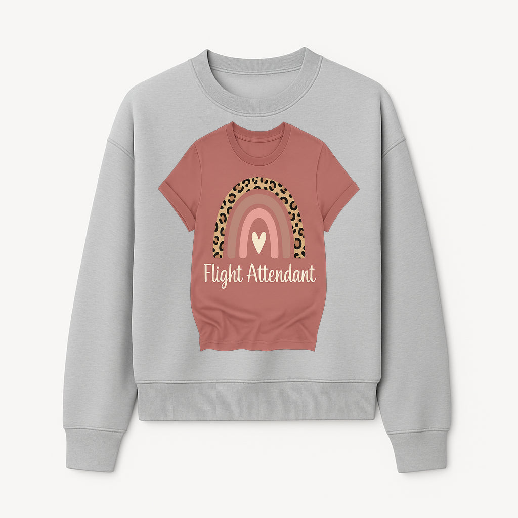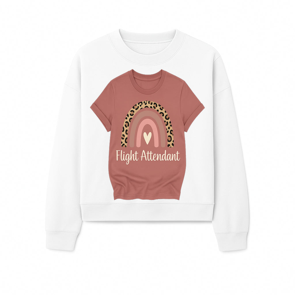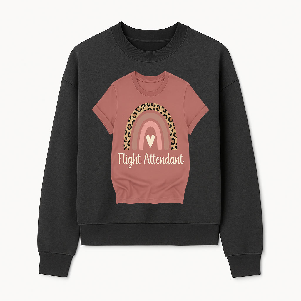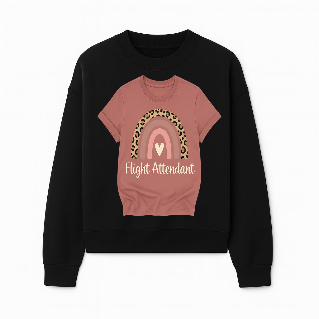 Flight Attendant Graphic Tee with Rainbow and Leopard Print Design for Trendy Airline Professionals - Sweatshirt
