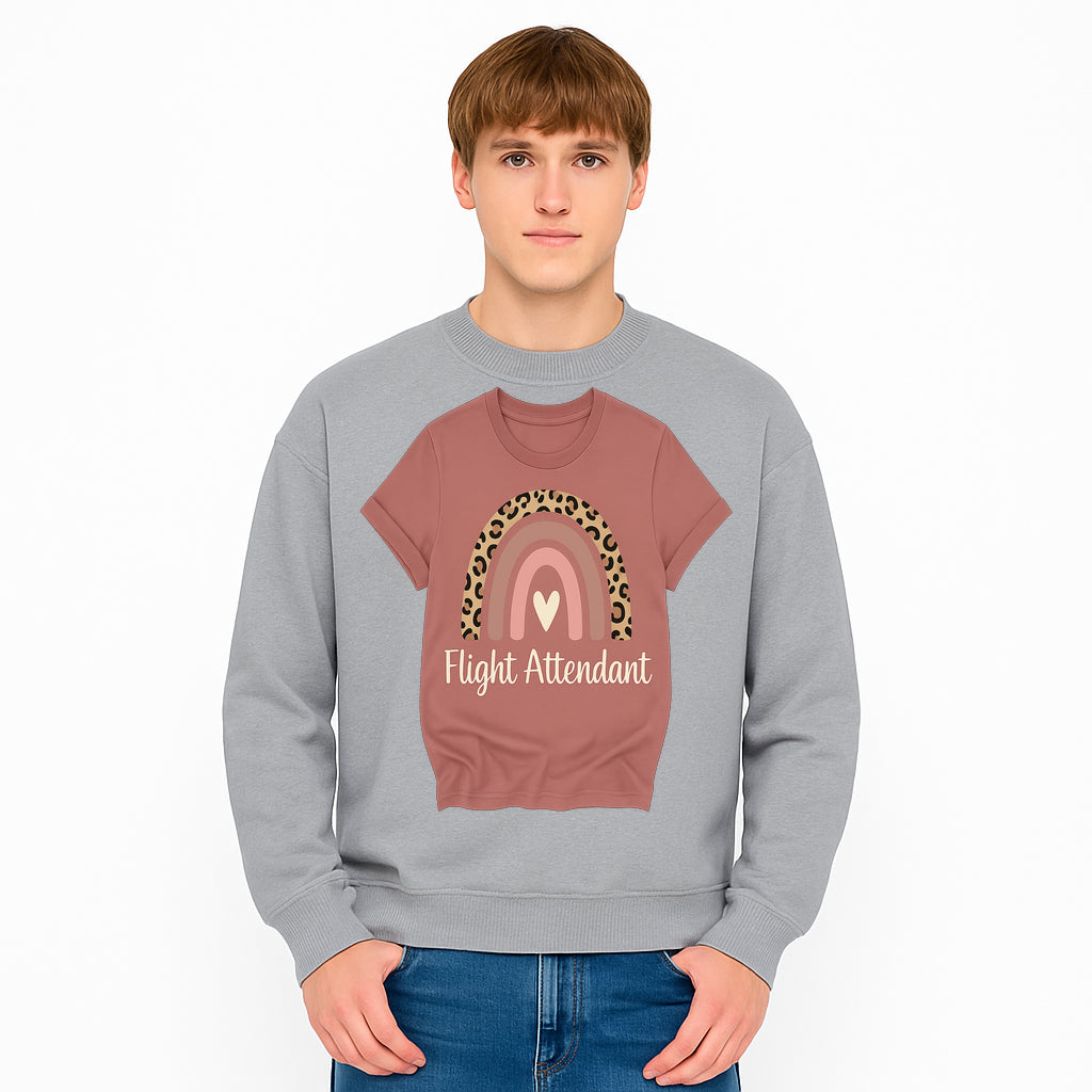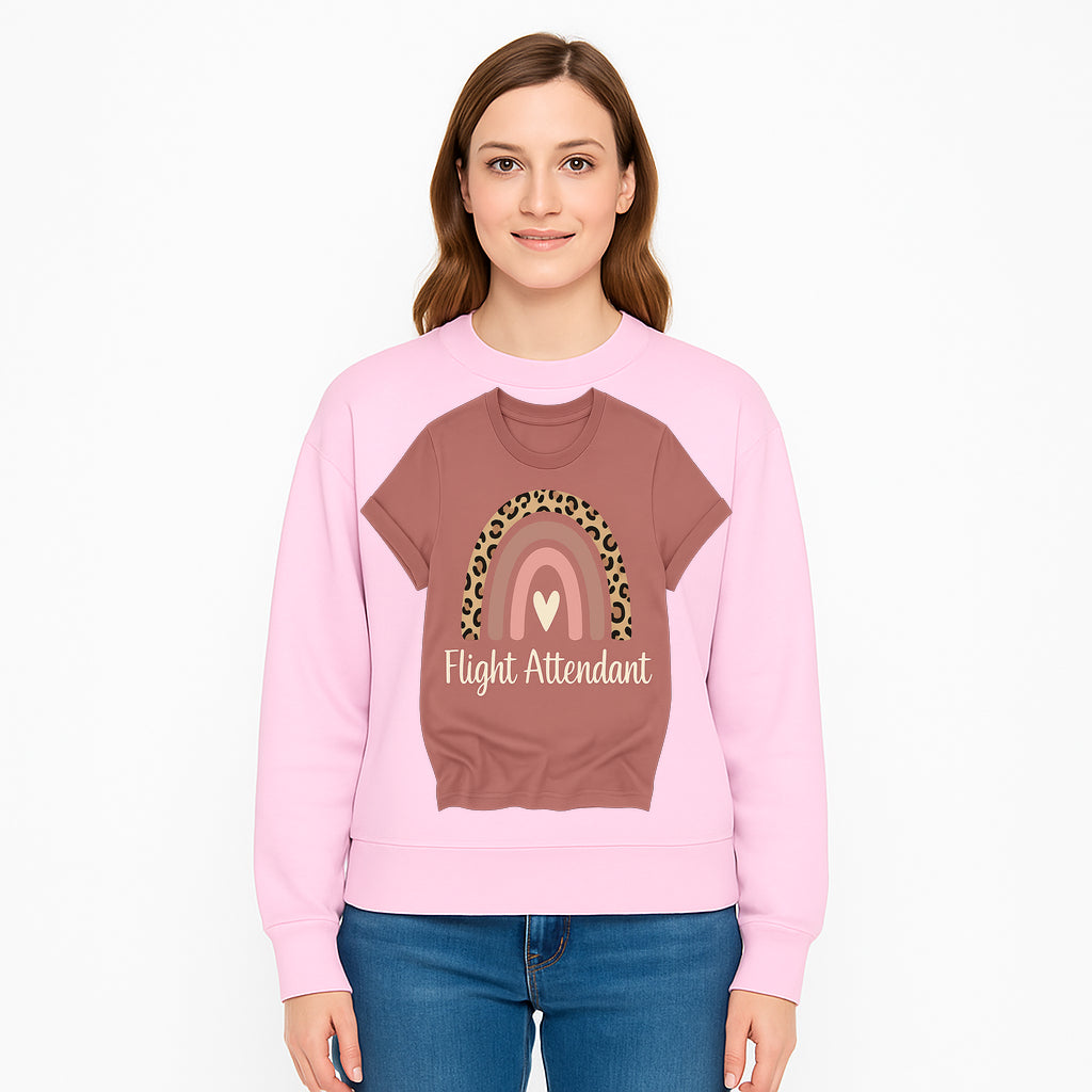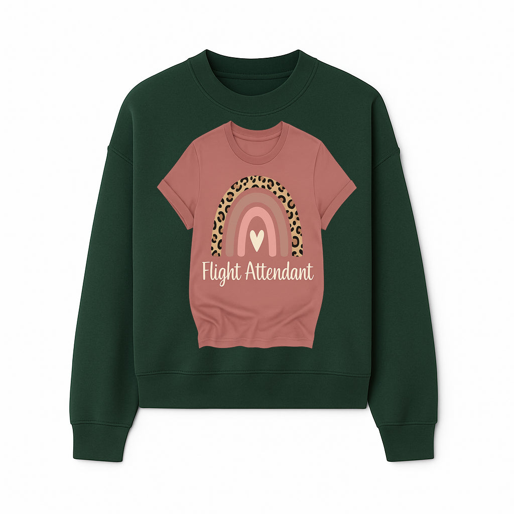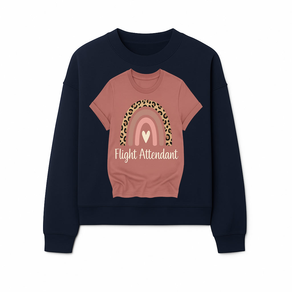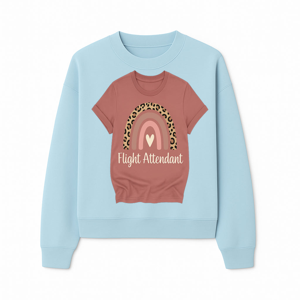 Flight Attendant Graphic Tee with Rainbow and Leopard Print Design for Trendy Airline Professionals - Sweatshirt