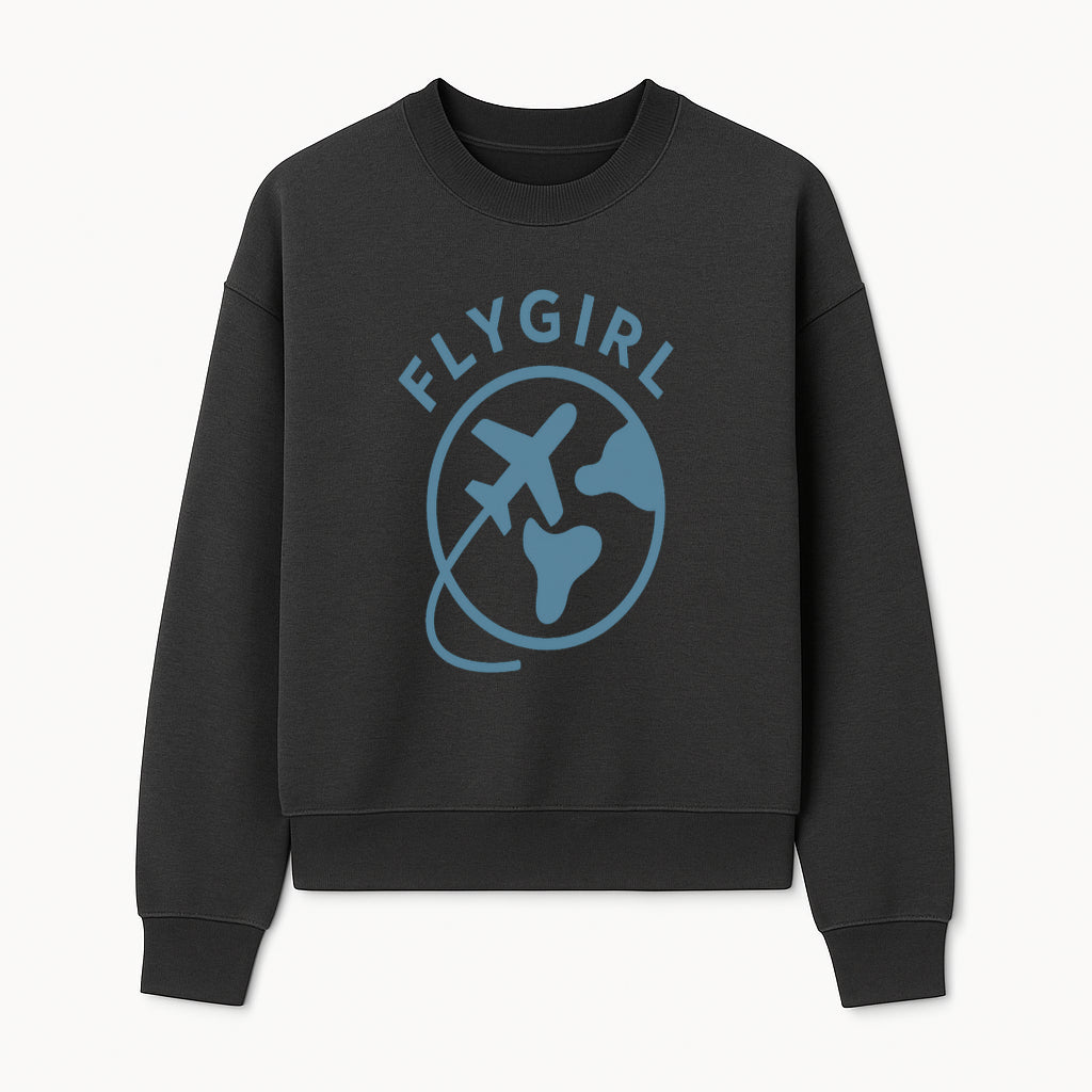 Flygirl Airplane and World Travel Graphic Tee for Women, Aviation Lover Gift, Trendy Travel Shirt, Adventure Apparel - Sweatshirt