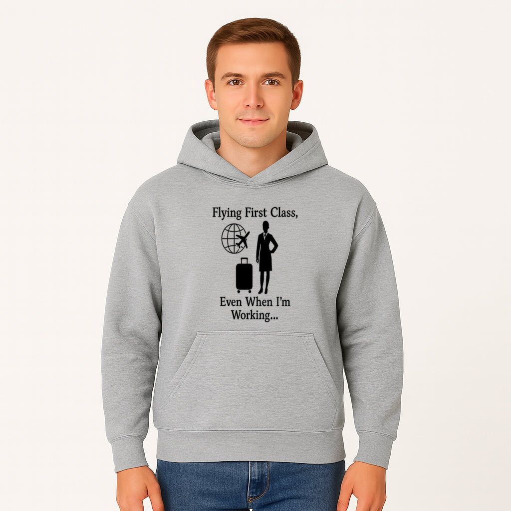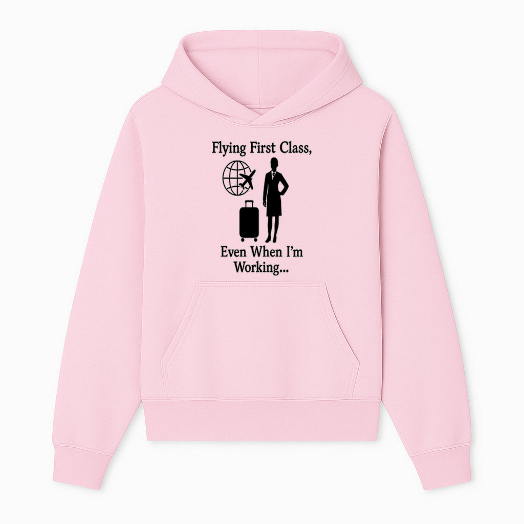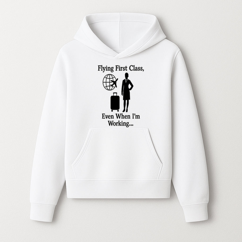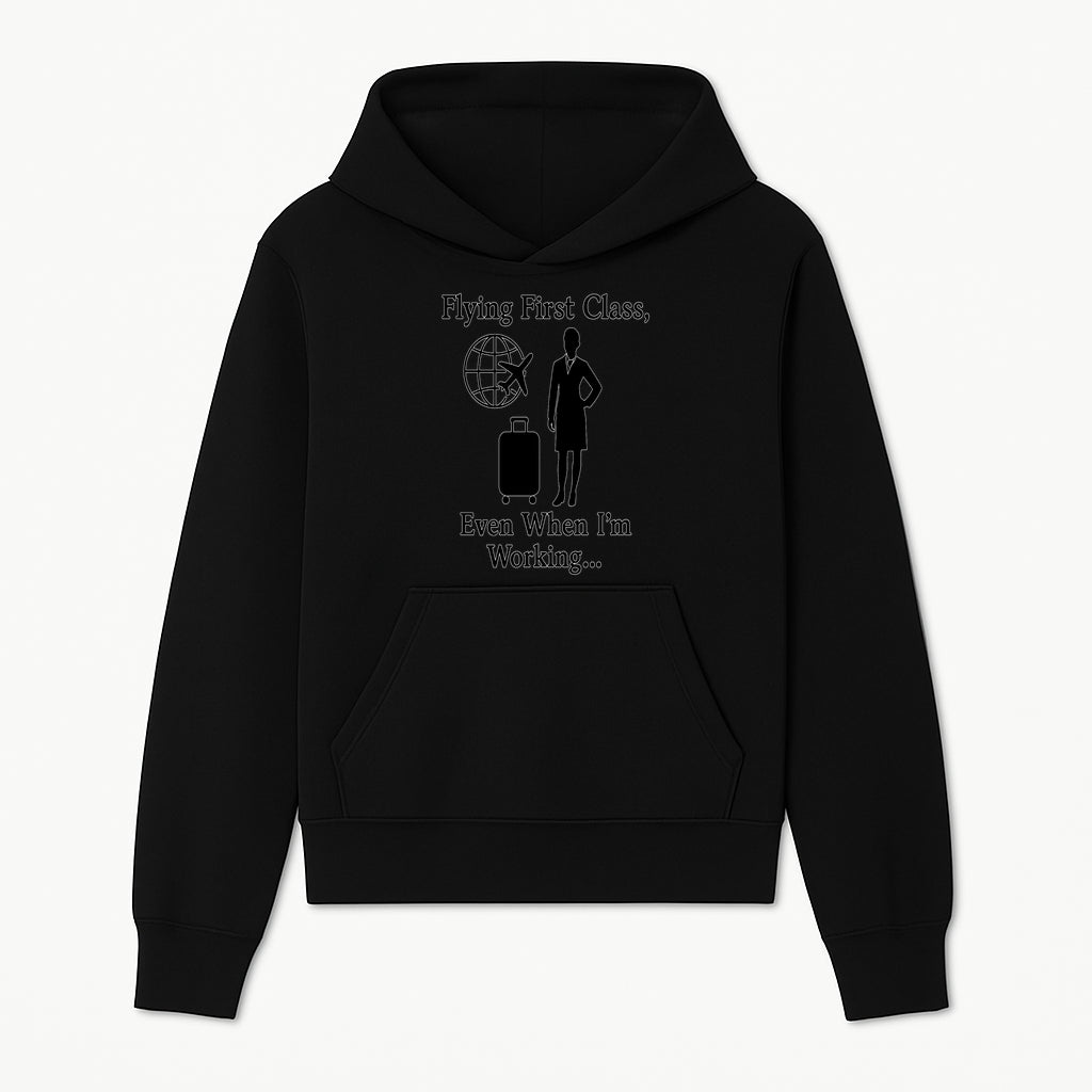 Flying First Class Travel Quote T-shirt | Business Trip Humor Gift for Professionals | Airplane Suitcase Globe Design - Hoodie