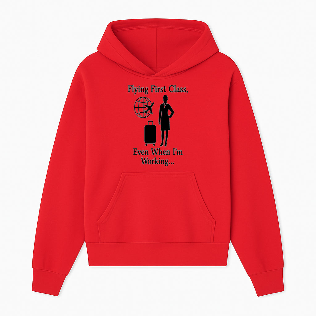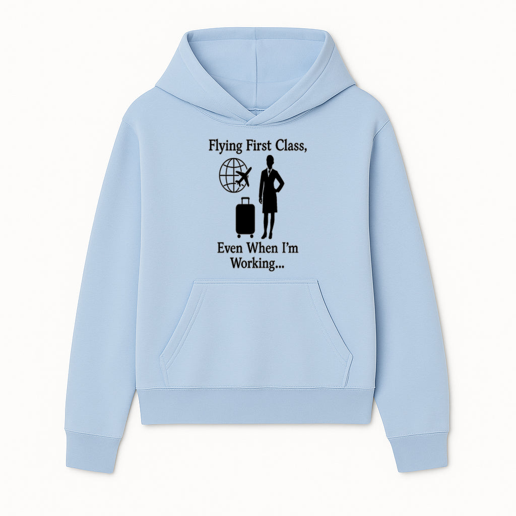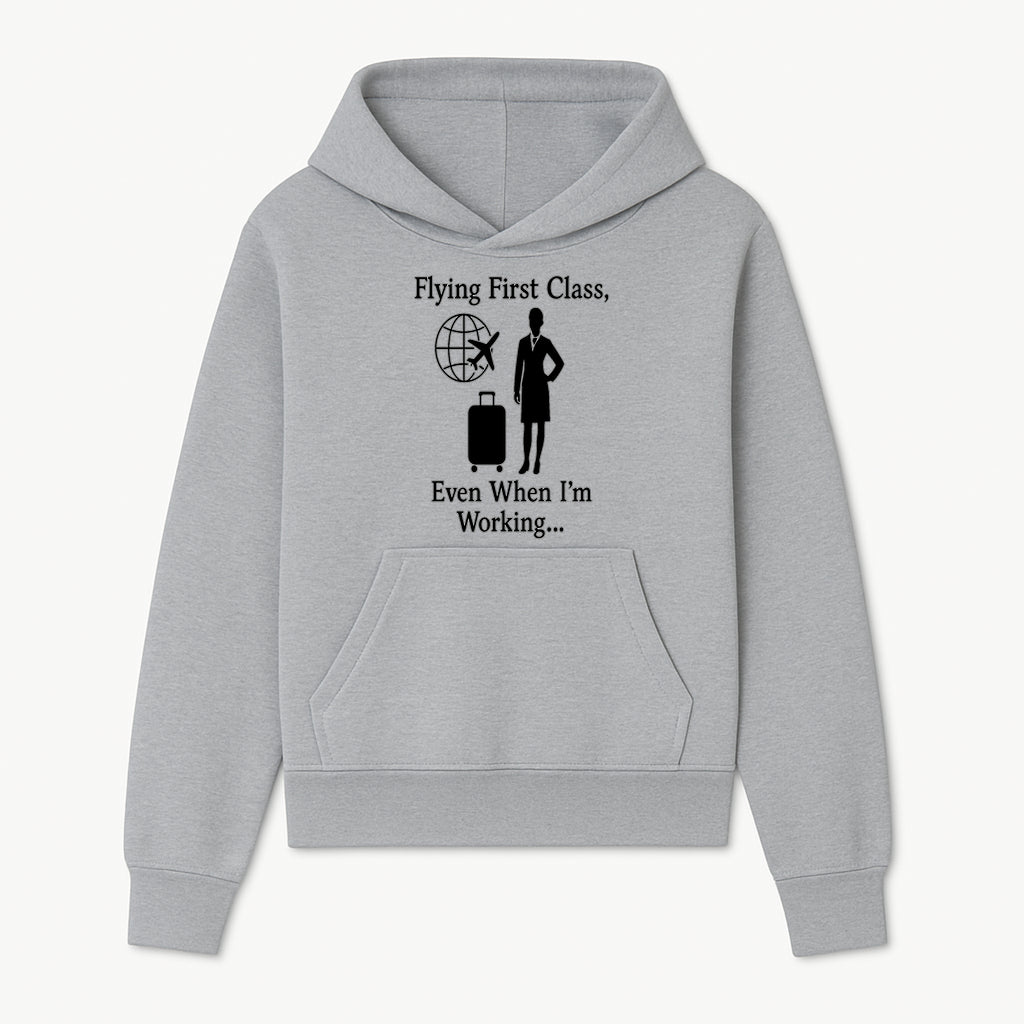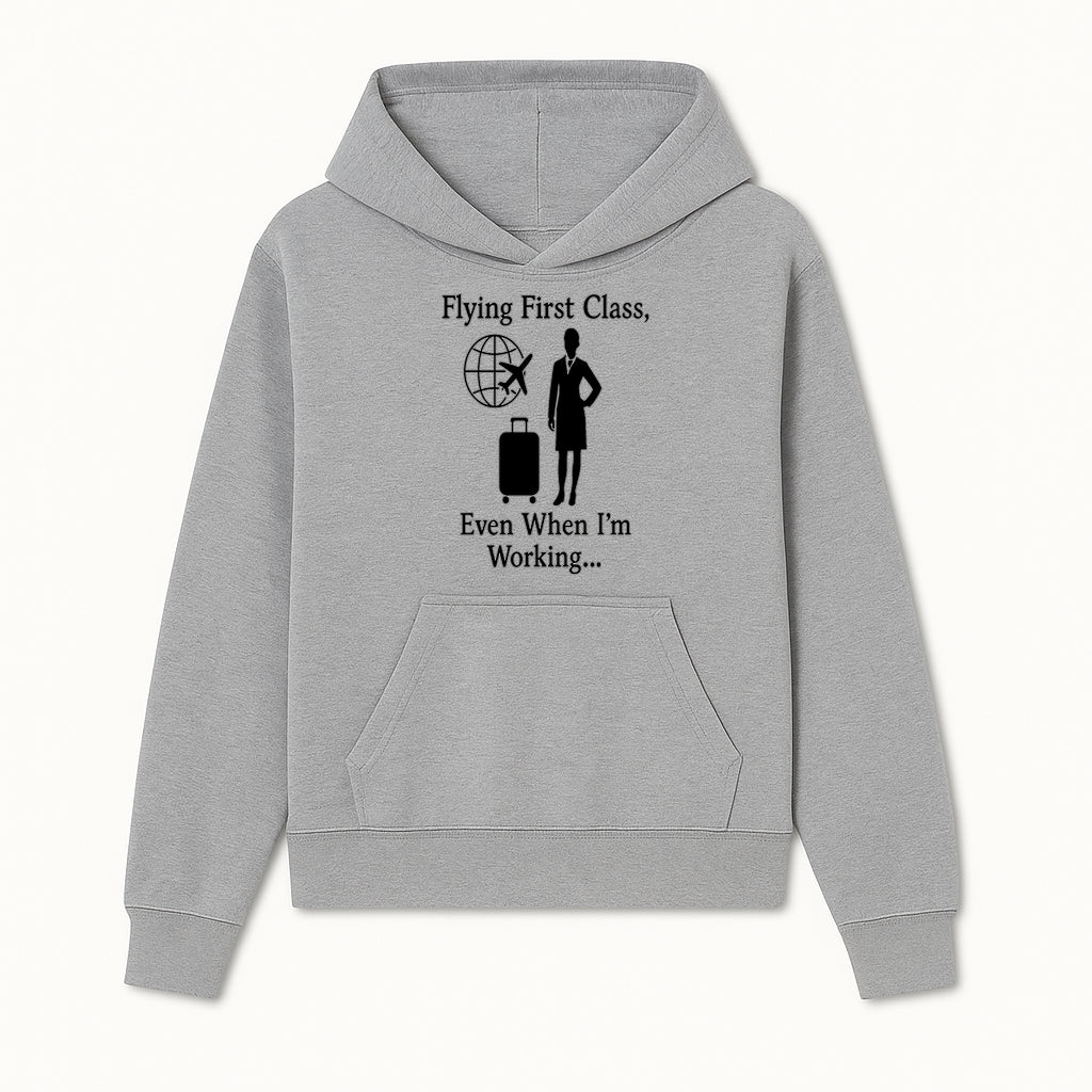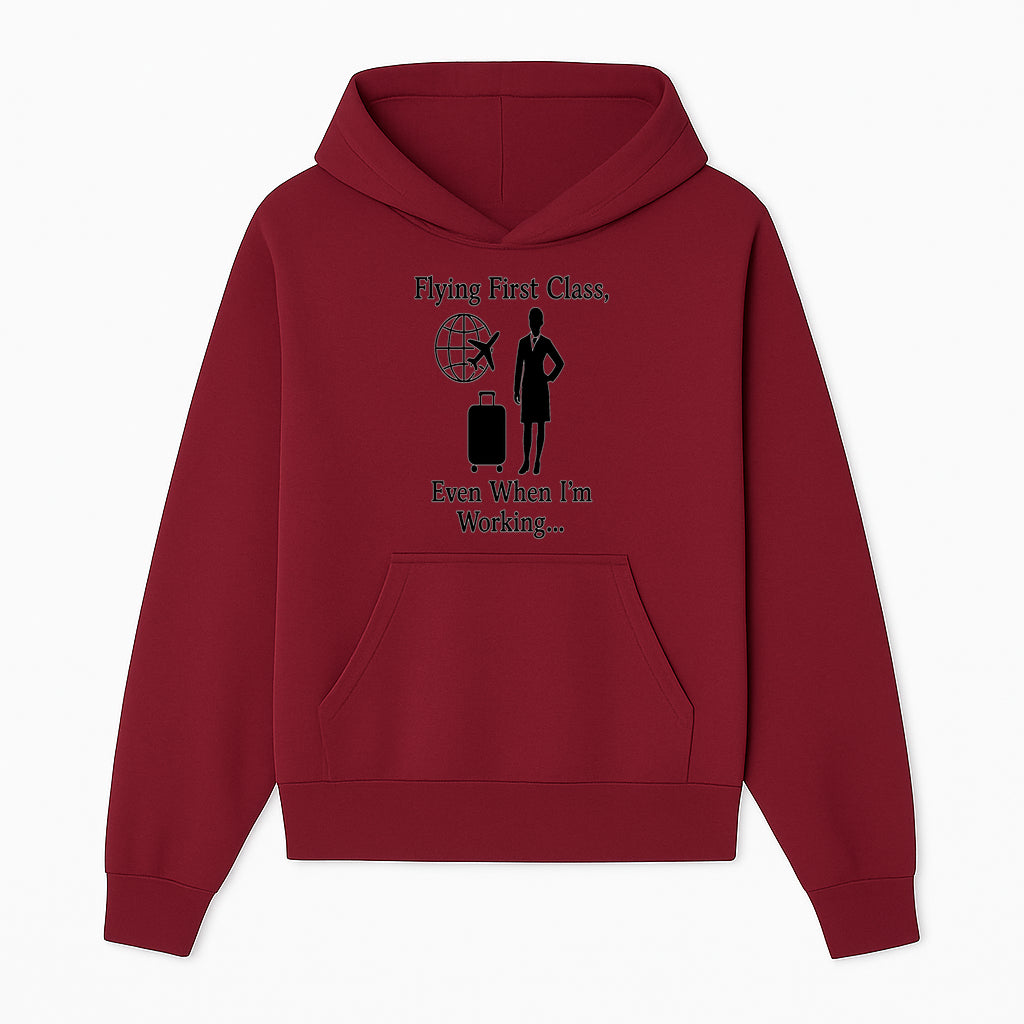 Flying First Class Travel Quote T-shirt | Business Trip Humor Gift for Professionals | Airplane Suitcase Globe Design - Hoodie