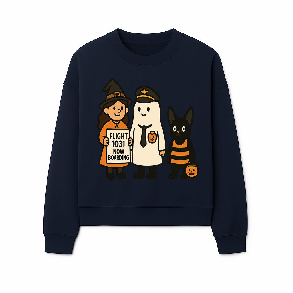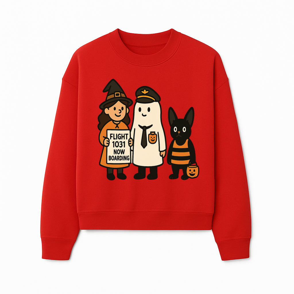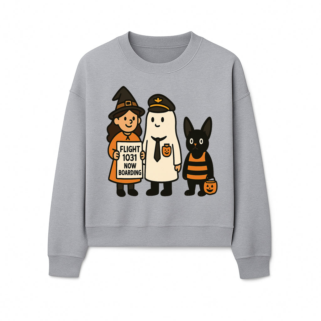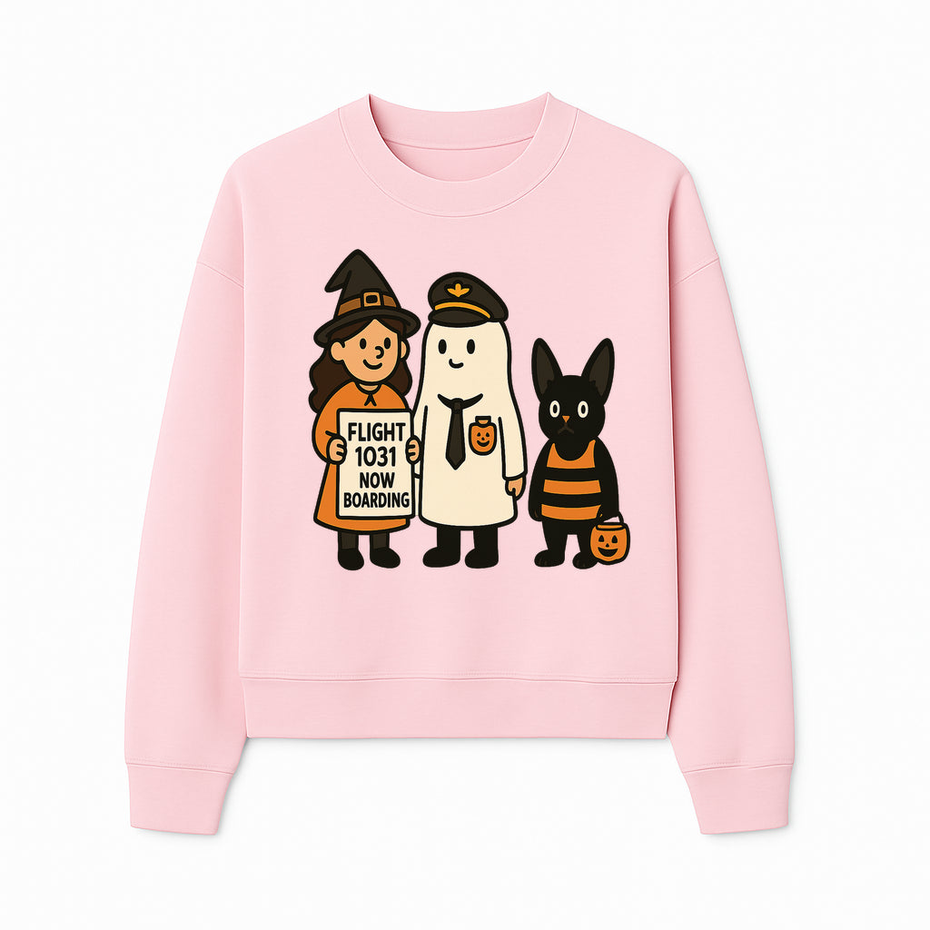 Halloween Flight 1031 Boarding Sign Art Print - Spooky Ghost, Witch, and Cat Costume Decor for Fall, Trick or Treat, Kids Room - Sweatshirt