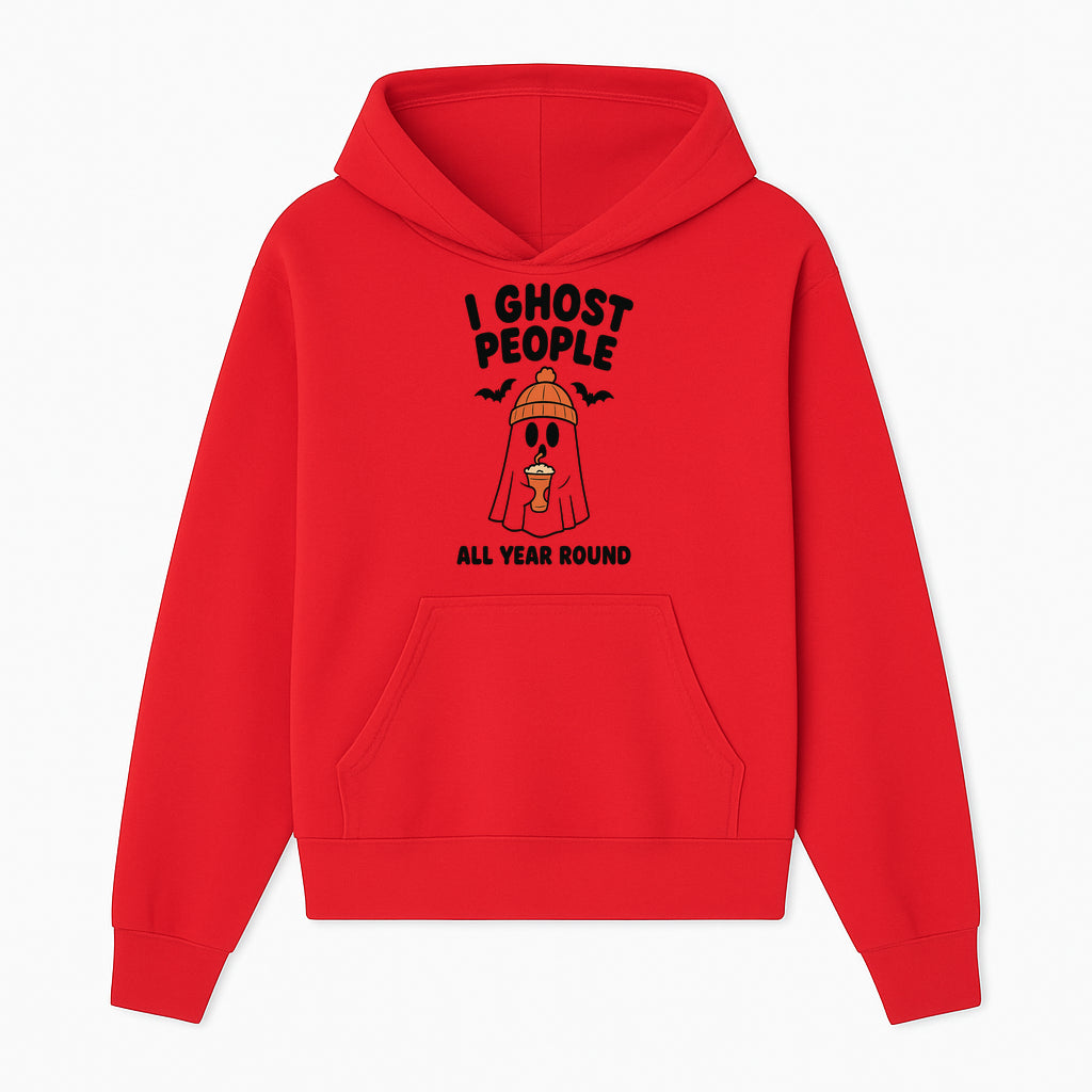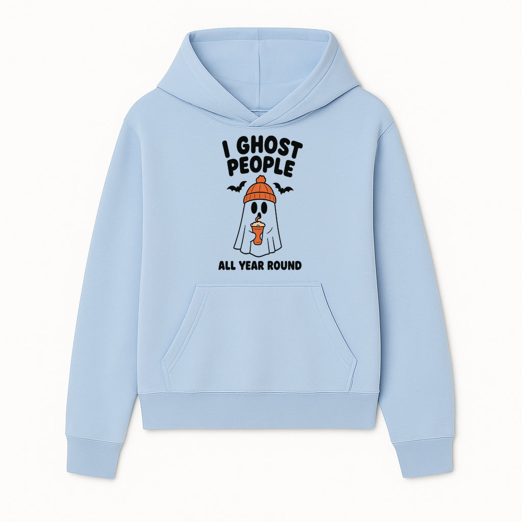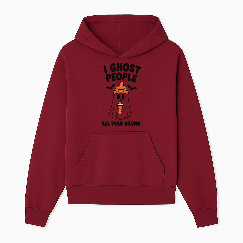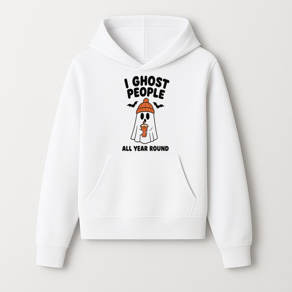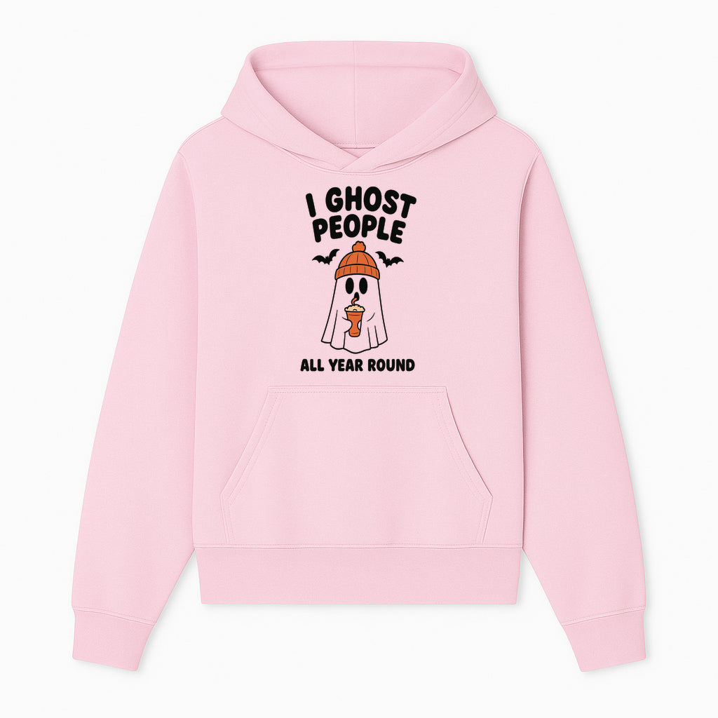 I Ghost People All Year Round - Cute Halloween Ghost with Coffee, Spooky Decor, Fun Ghost Theme, Autumn Apparel, Gift Idea - Hoodie