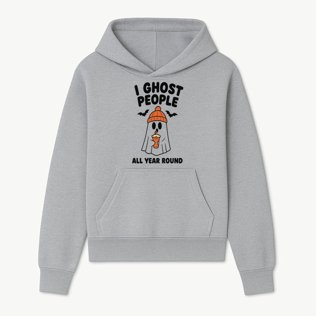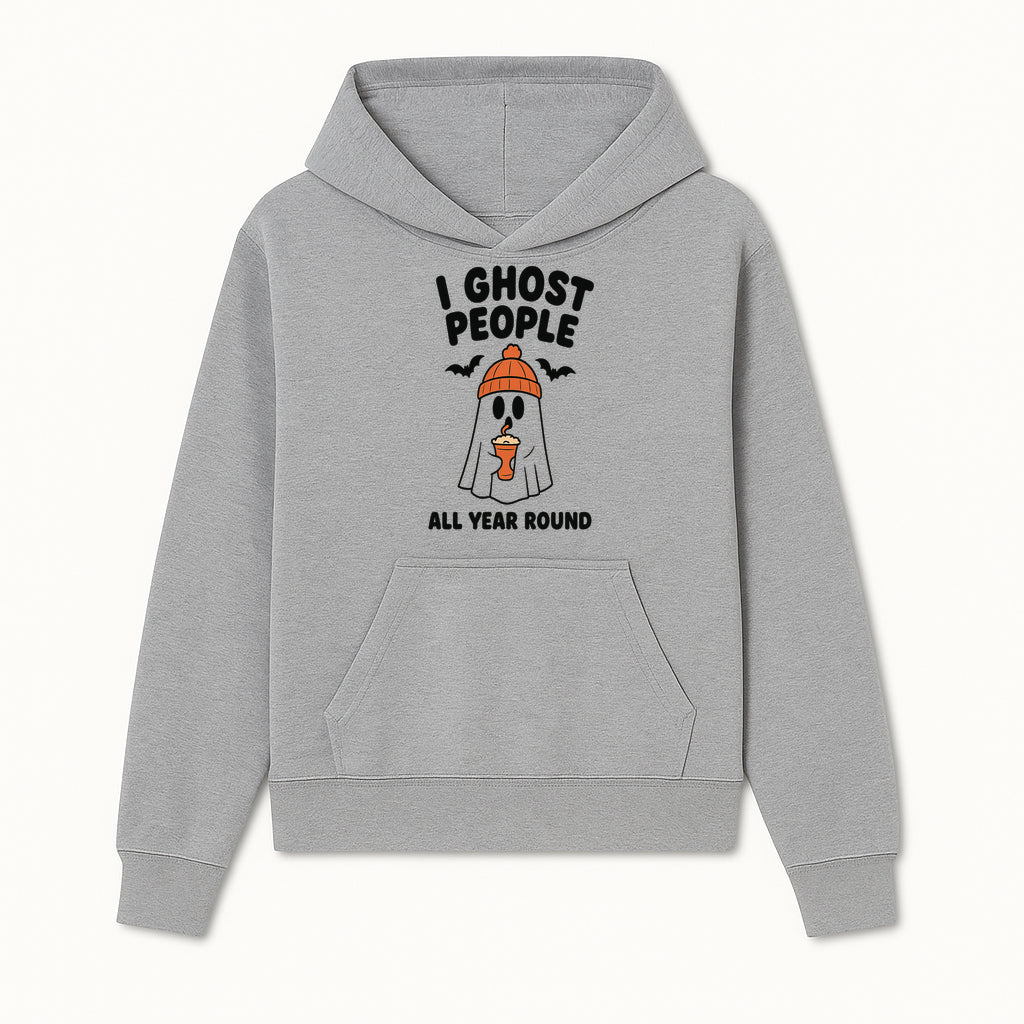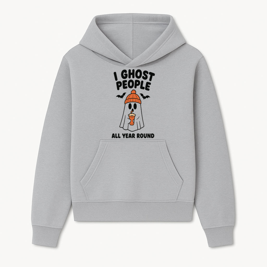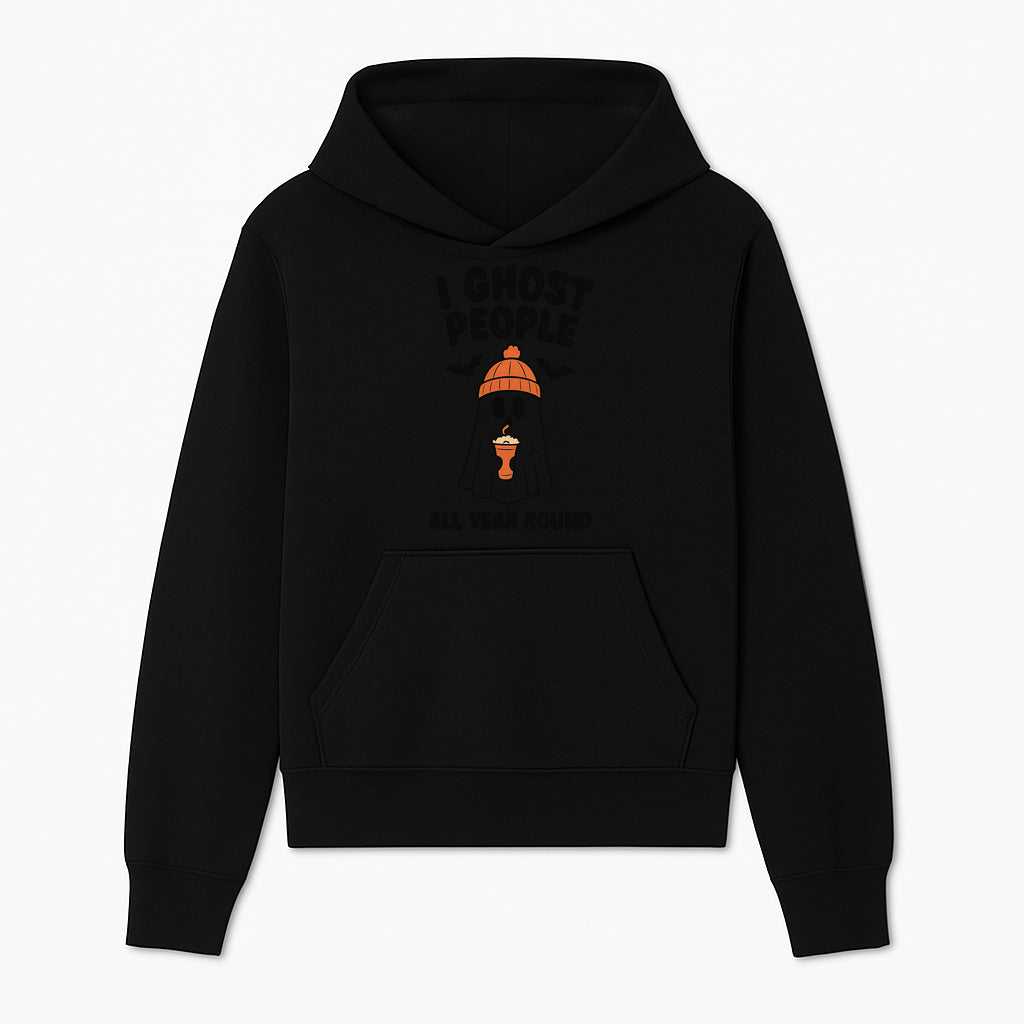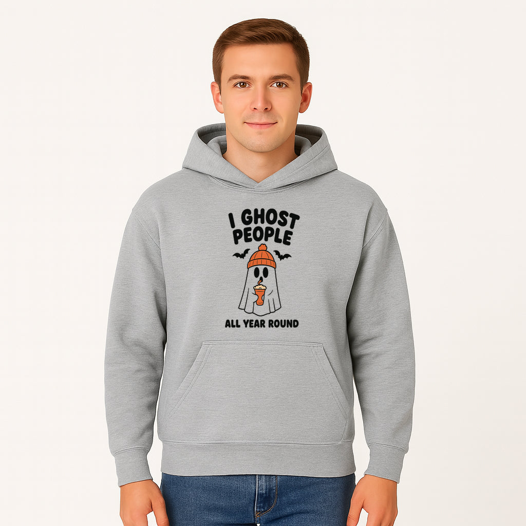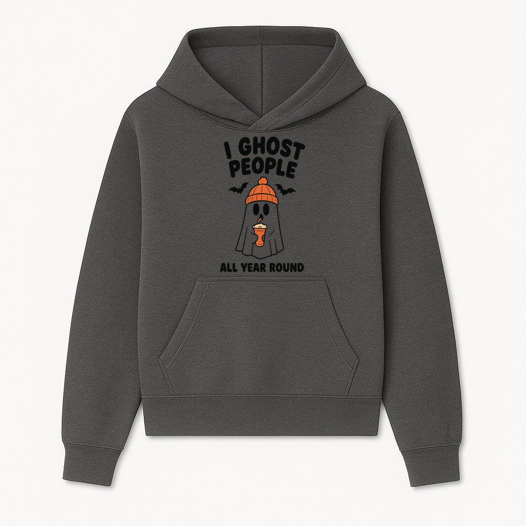 I Ghost People All Year Round - Cute Halloween Ghost with Coffee, Spooky Decor, Fun Ghost Theme, Autumn Apparel, Gift Idea - Hoodie