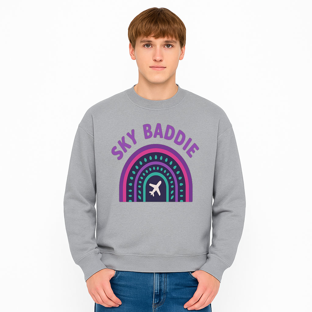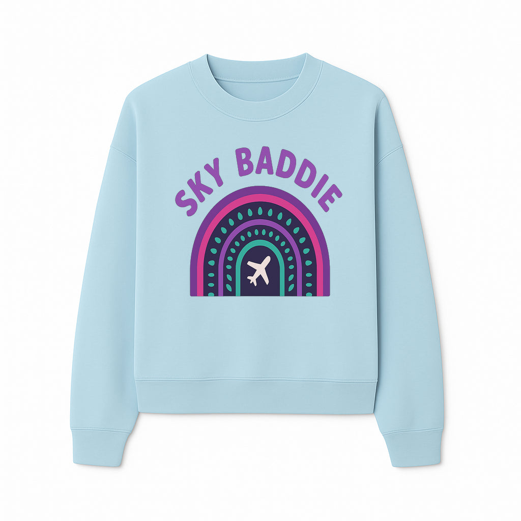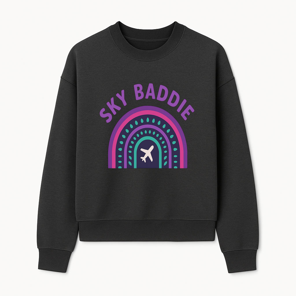 Sky Baddie Rainbow Airplane Graphic T-Shirt | Trendy Aviation Design for Travel Lovers | Stylish Comfortable Casual Wear - Sweatshirt
