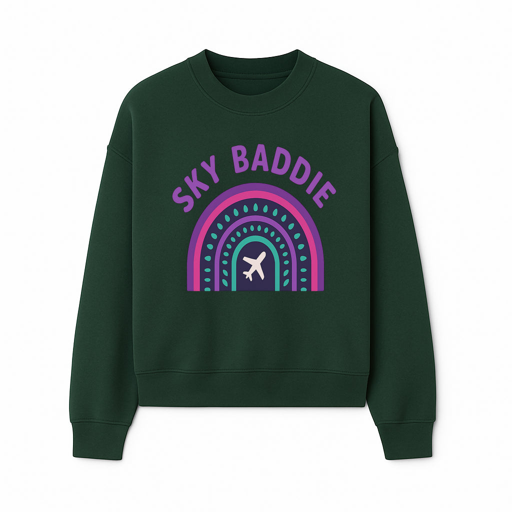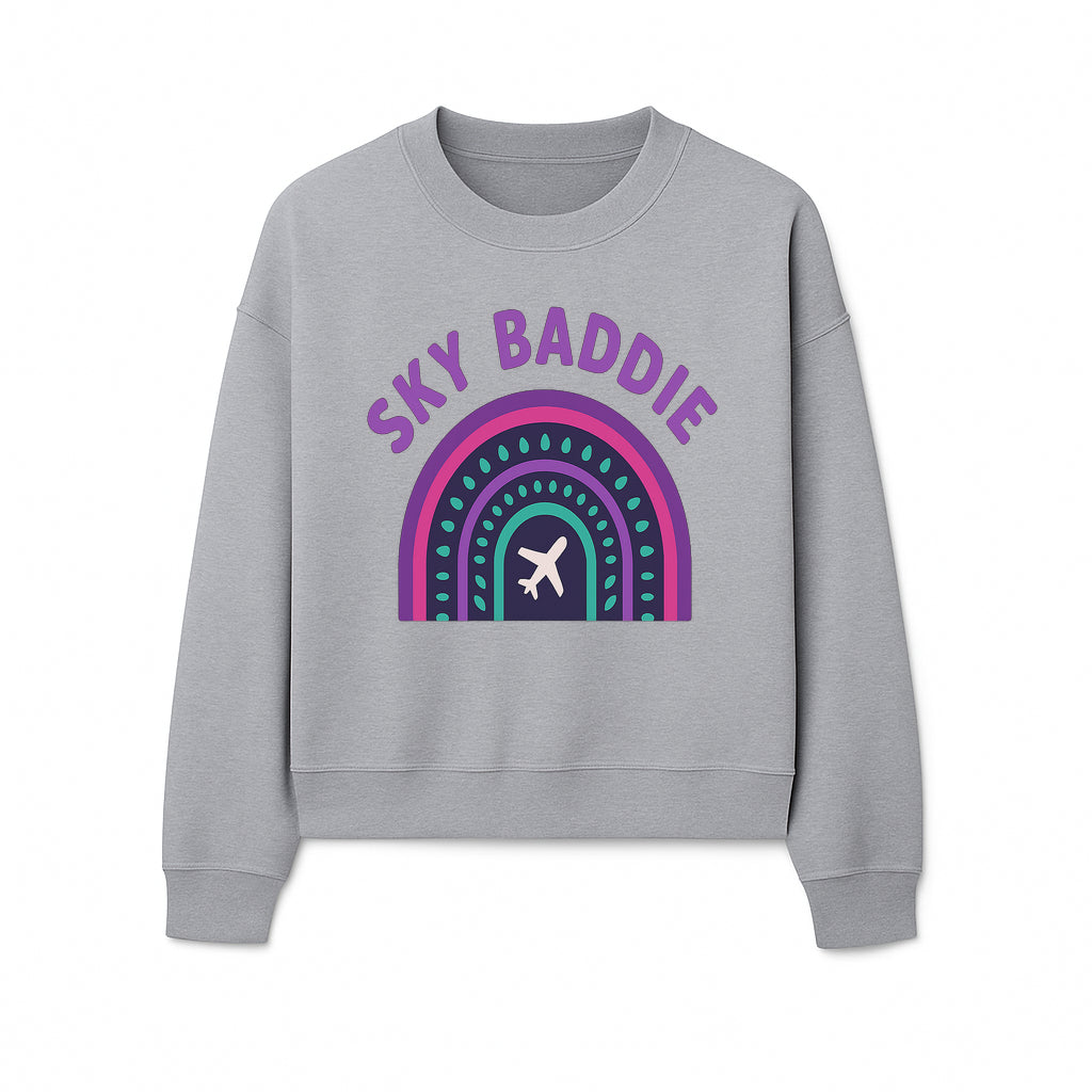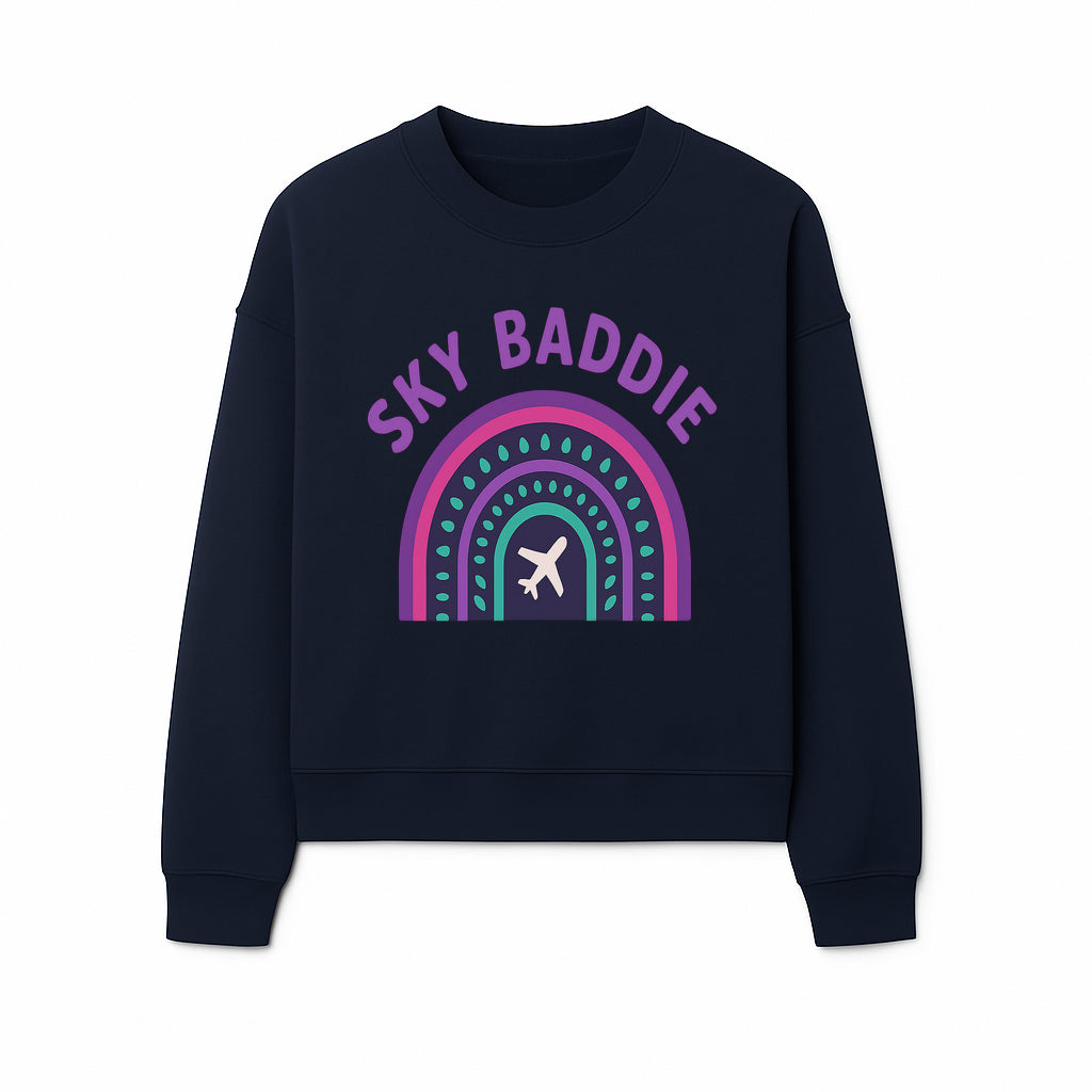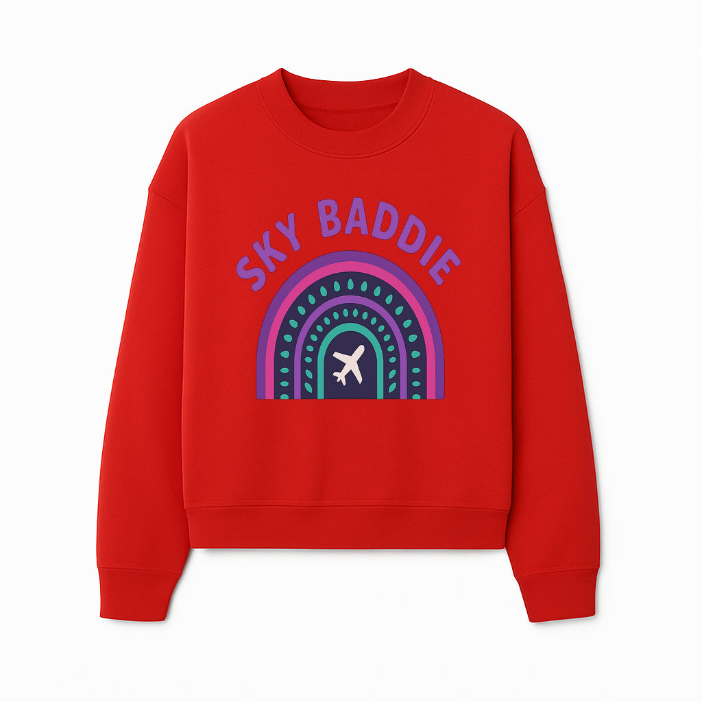 Sky Baddie Rainbow Airplane Graphic T-Shirt | Trendy Aviation Design for Travel Lovers | Stylish Comfortable Casual Wear - Sweatshirt
