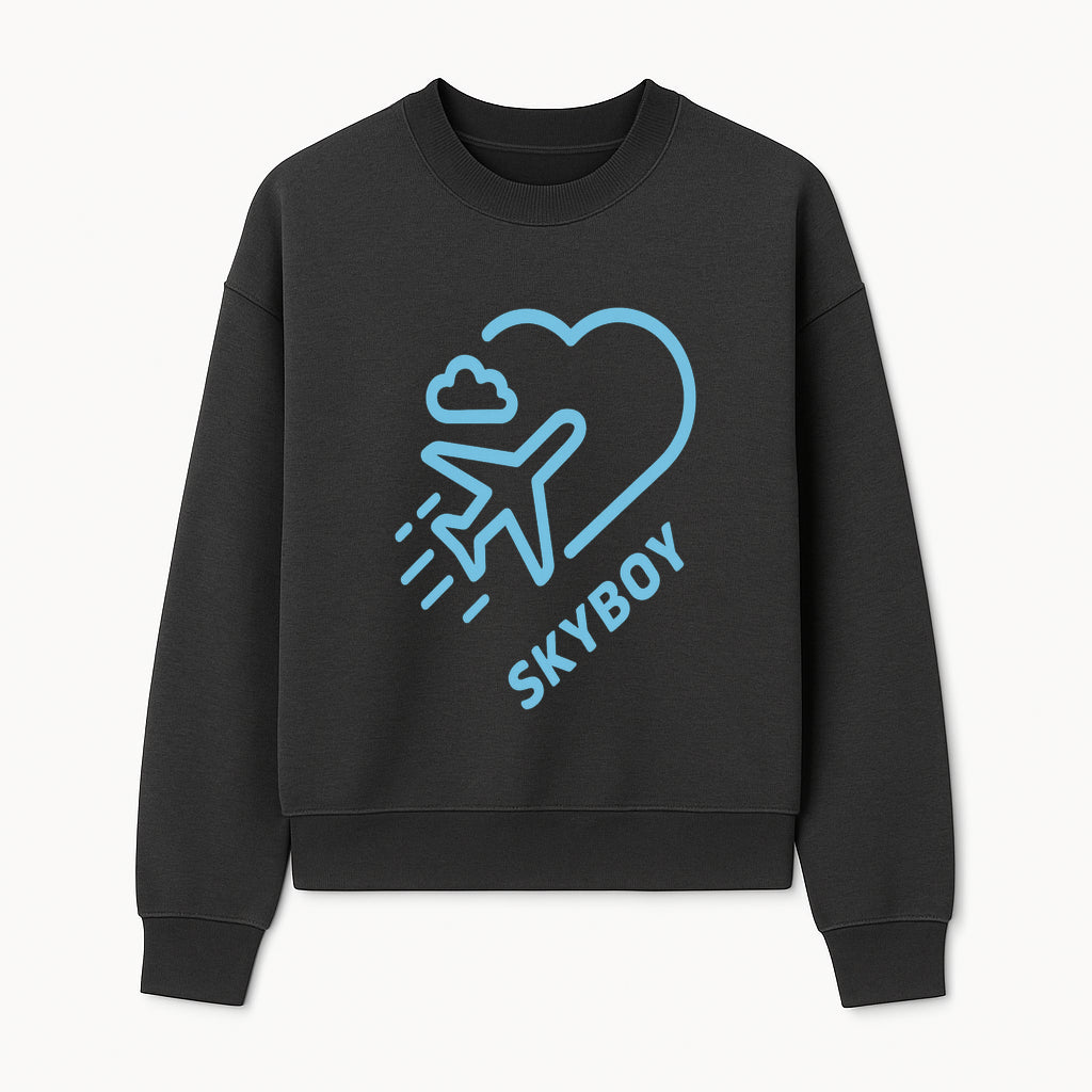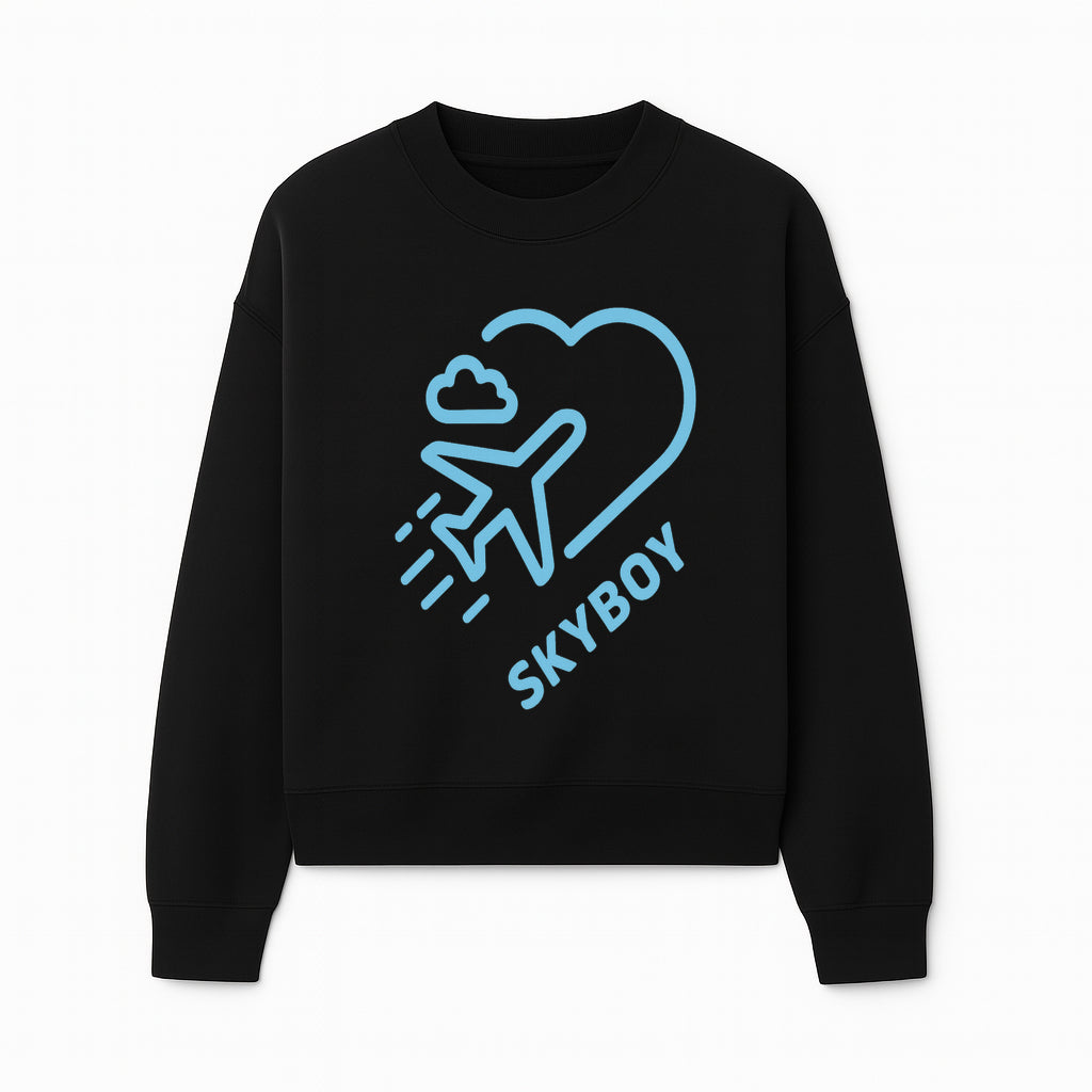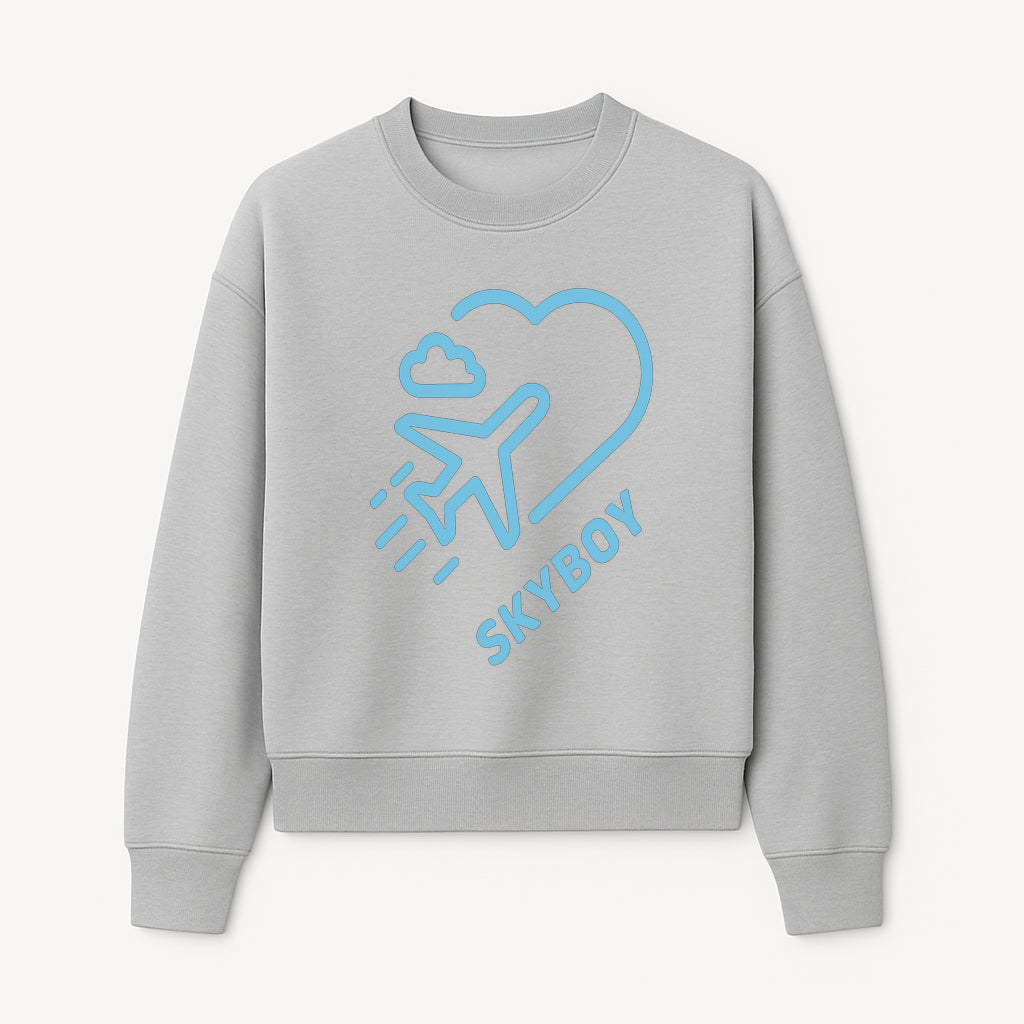 Skyboy Air Travel Graphic Tee with Airplane and Heart Design - Perfect for Aviation Lovers and Travelers - Sweatshirt