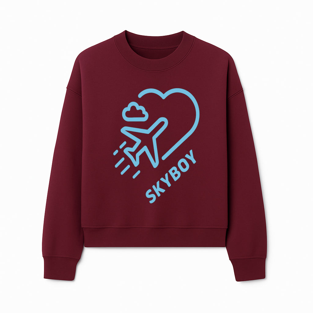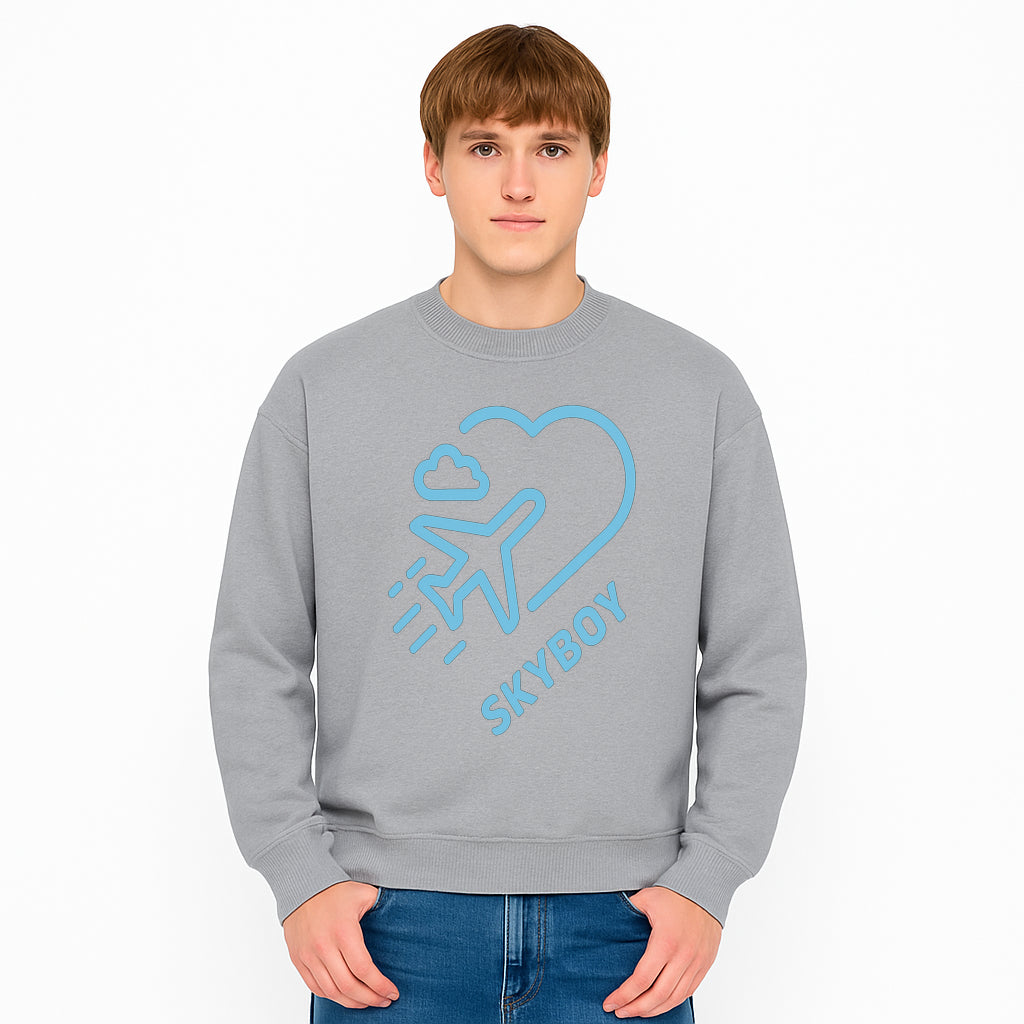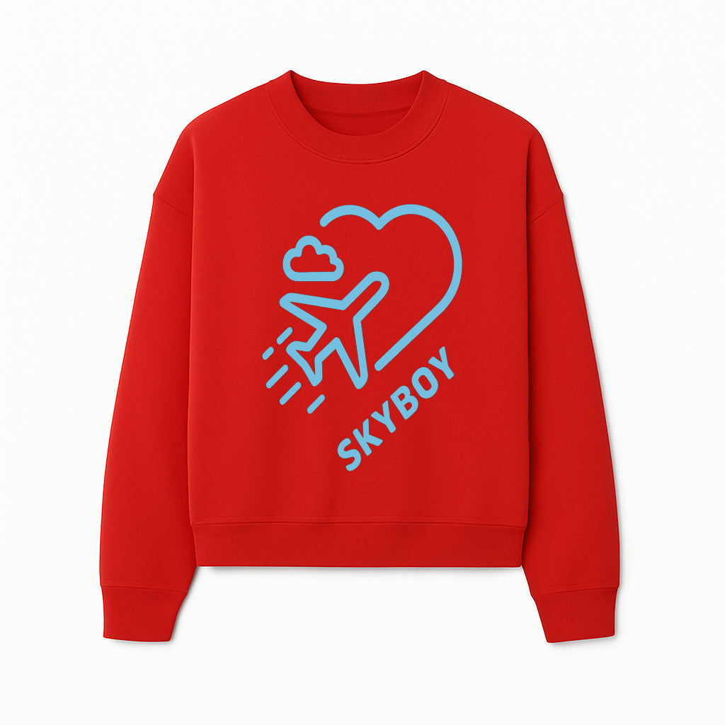 Skyboy Air Travel Graphic Tee with Airplane and Heart Design - Perfect for Aviation Lovers and Travelers - Sweatshirt