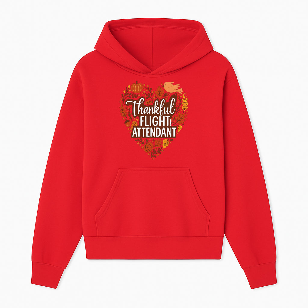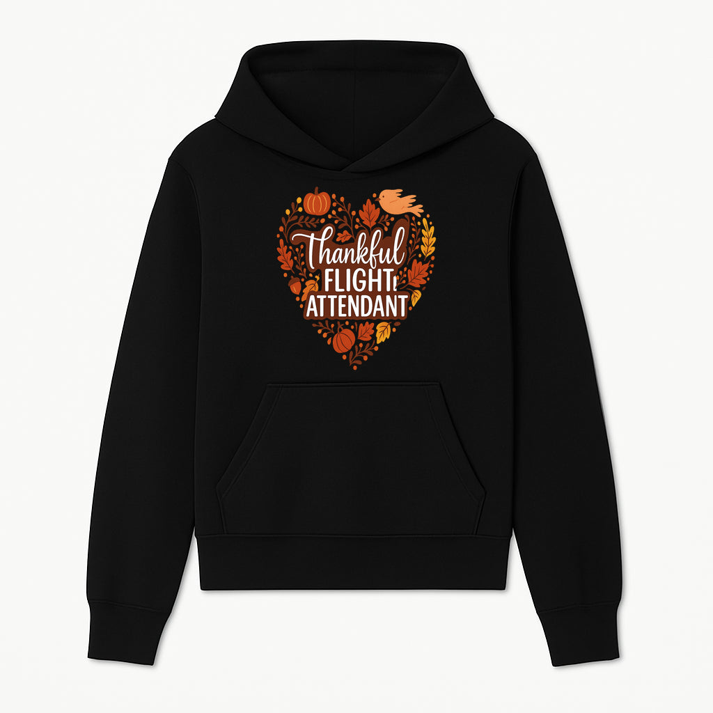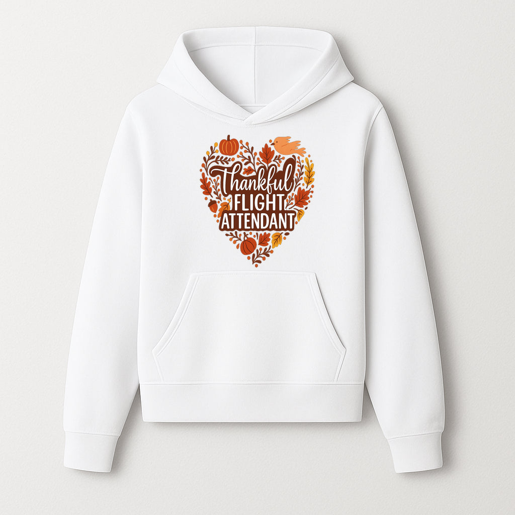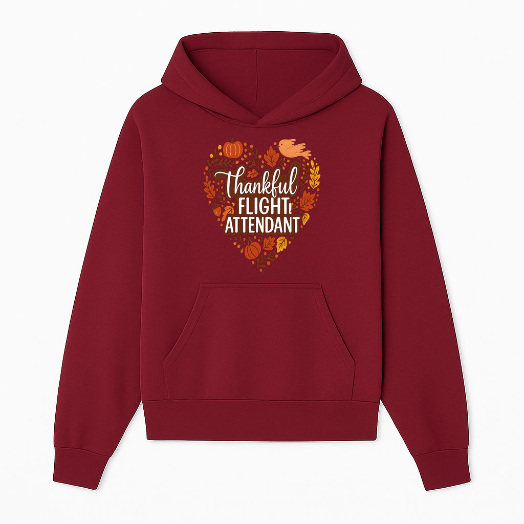Thankful Flight Attendant Fall Thanksgiving Heart Art Print, Autumn Decor, Airline Crew Gift, Nature-Inspired Wall Art, Seasonal Home Decor - Hoodie