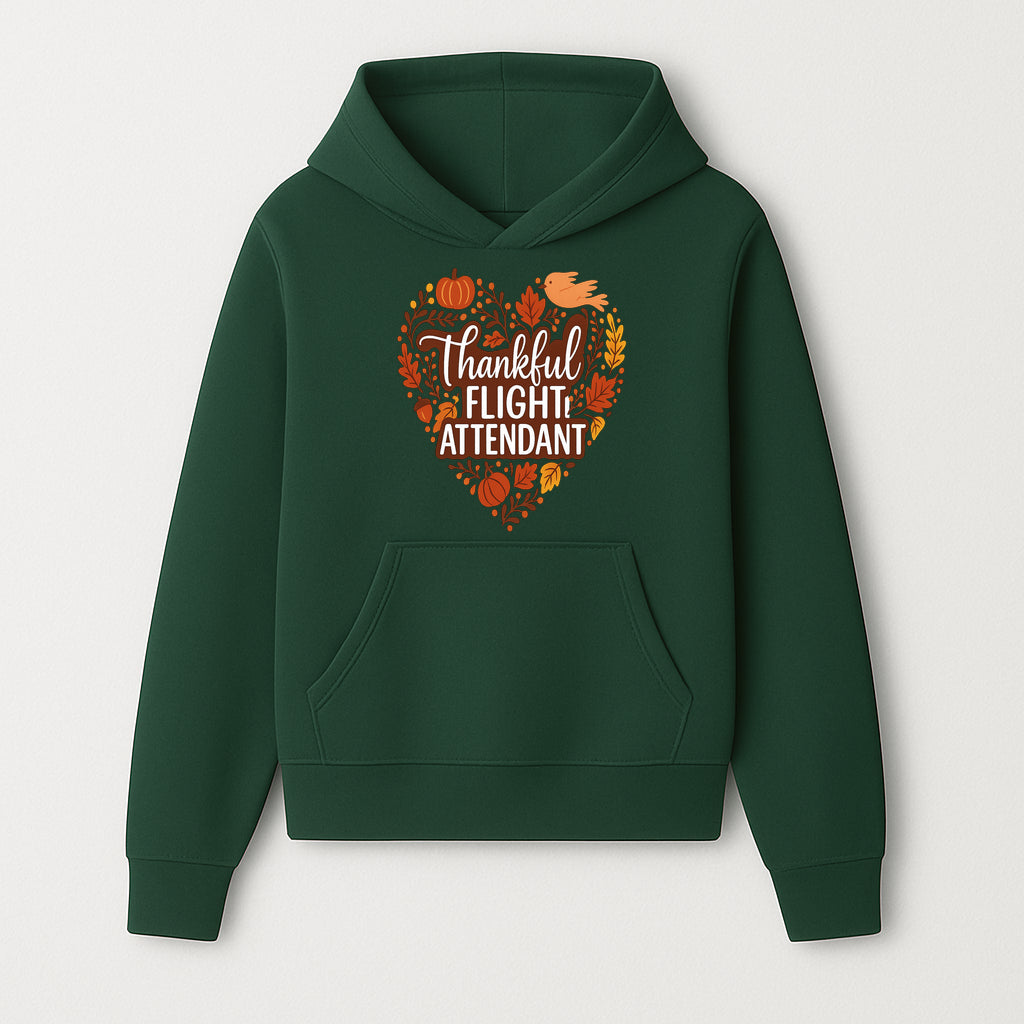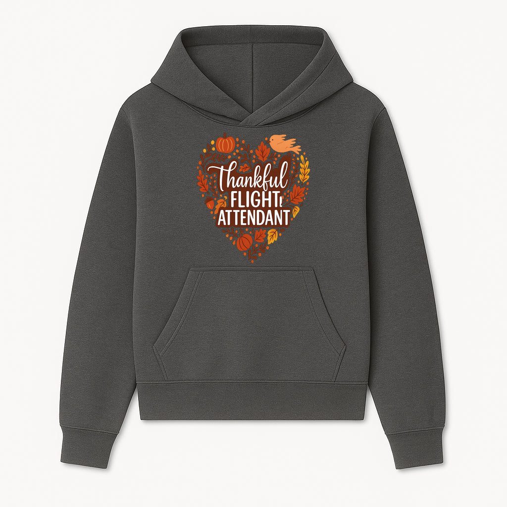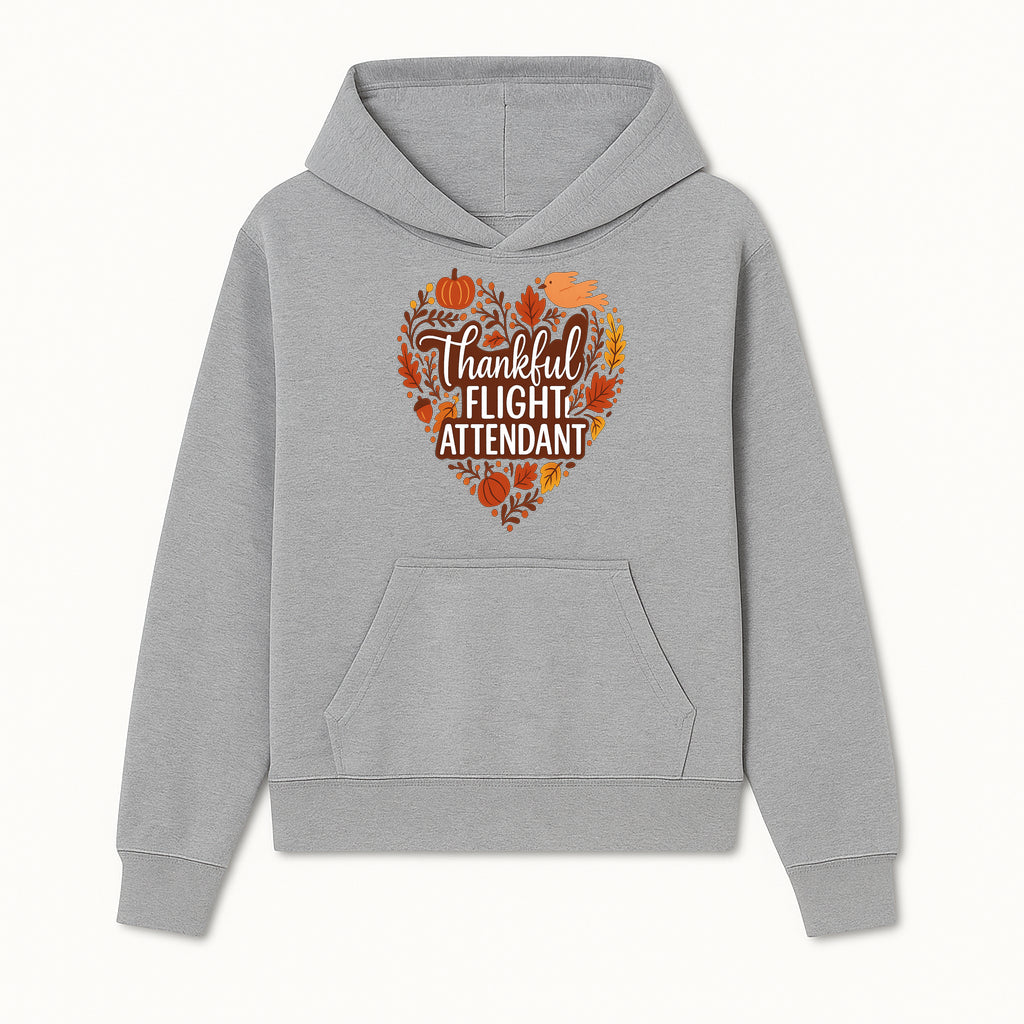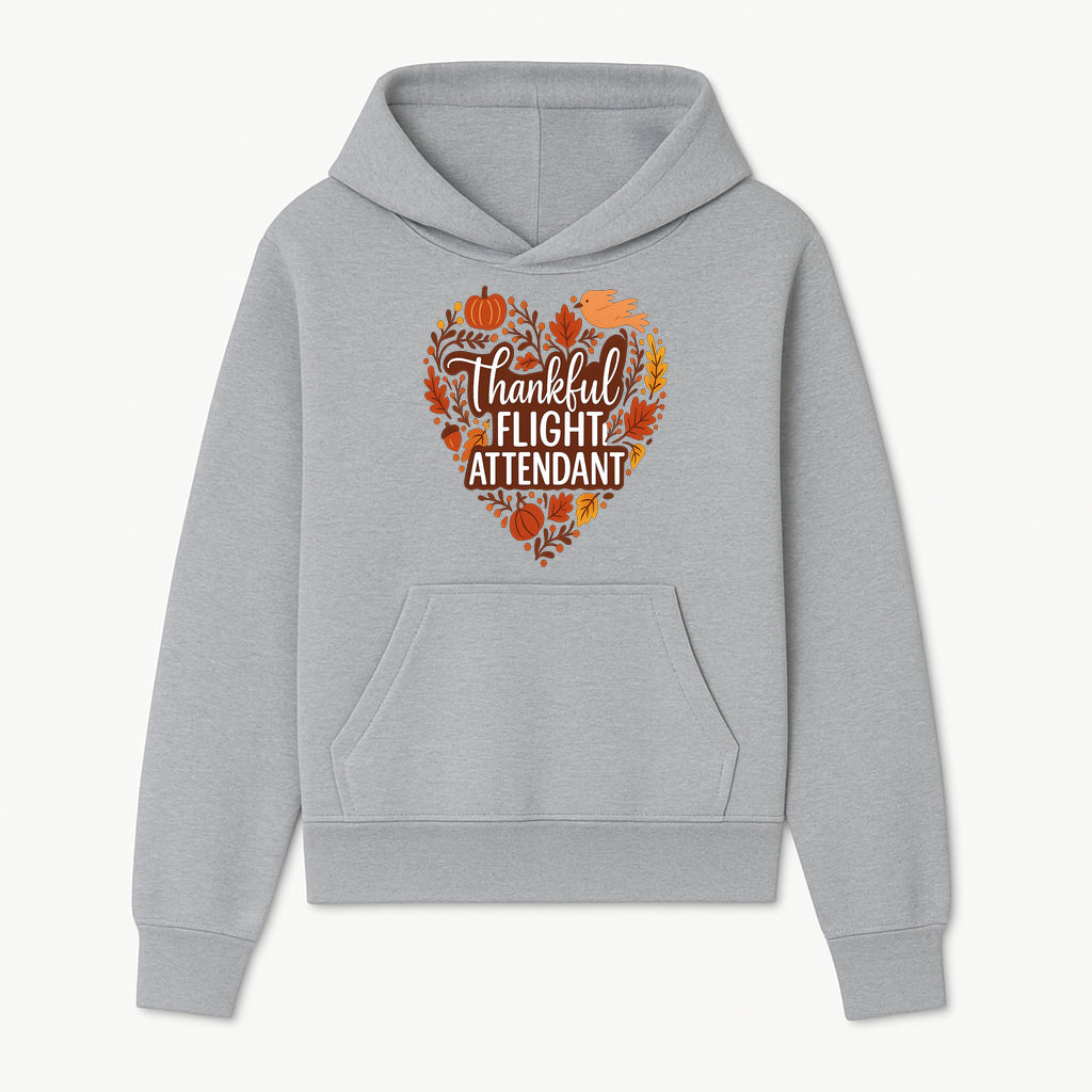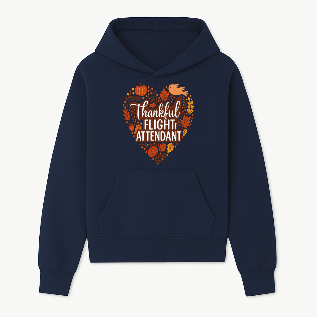 Thankful Flight Attendant Fall Thanksgiving Heart Art Print, Autumn Decor, Airline Crew Gift, Nature-Inspired Wall Art, Seasonal Home Decor - Hoodie
