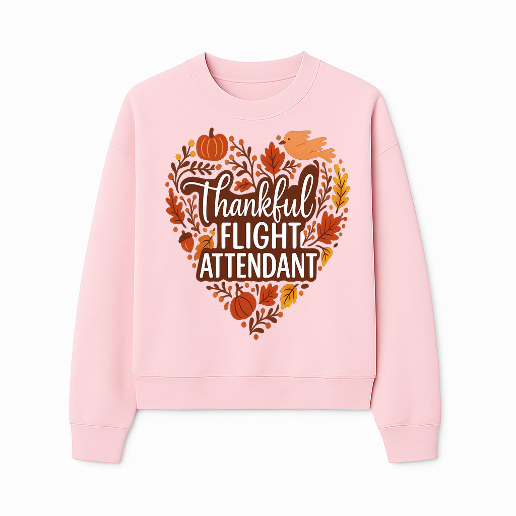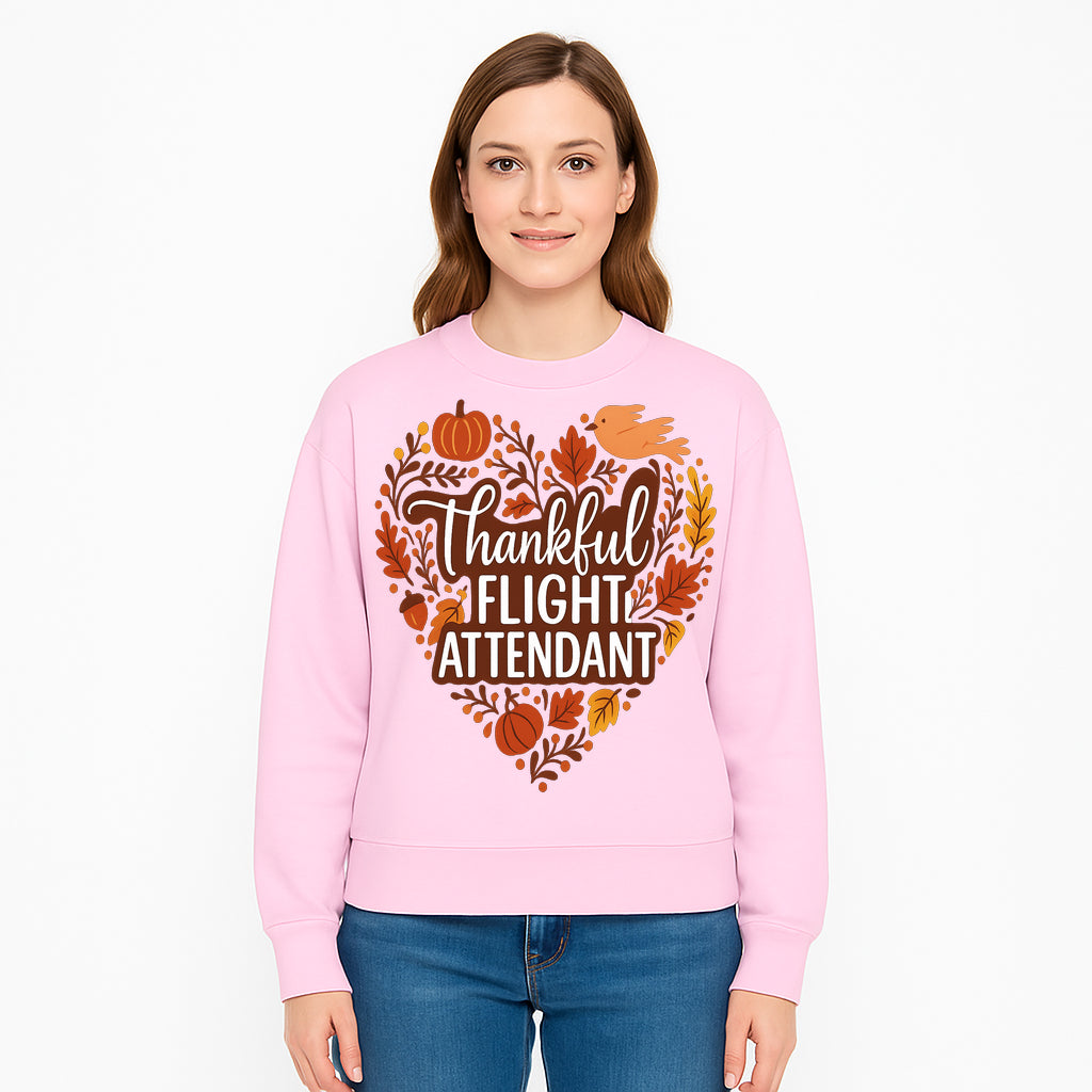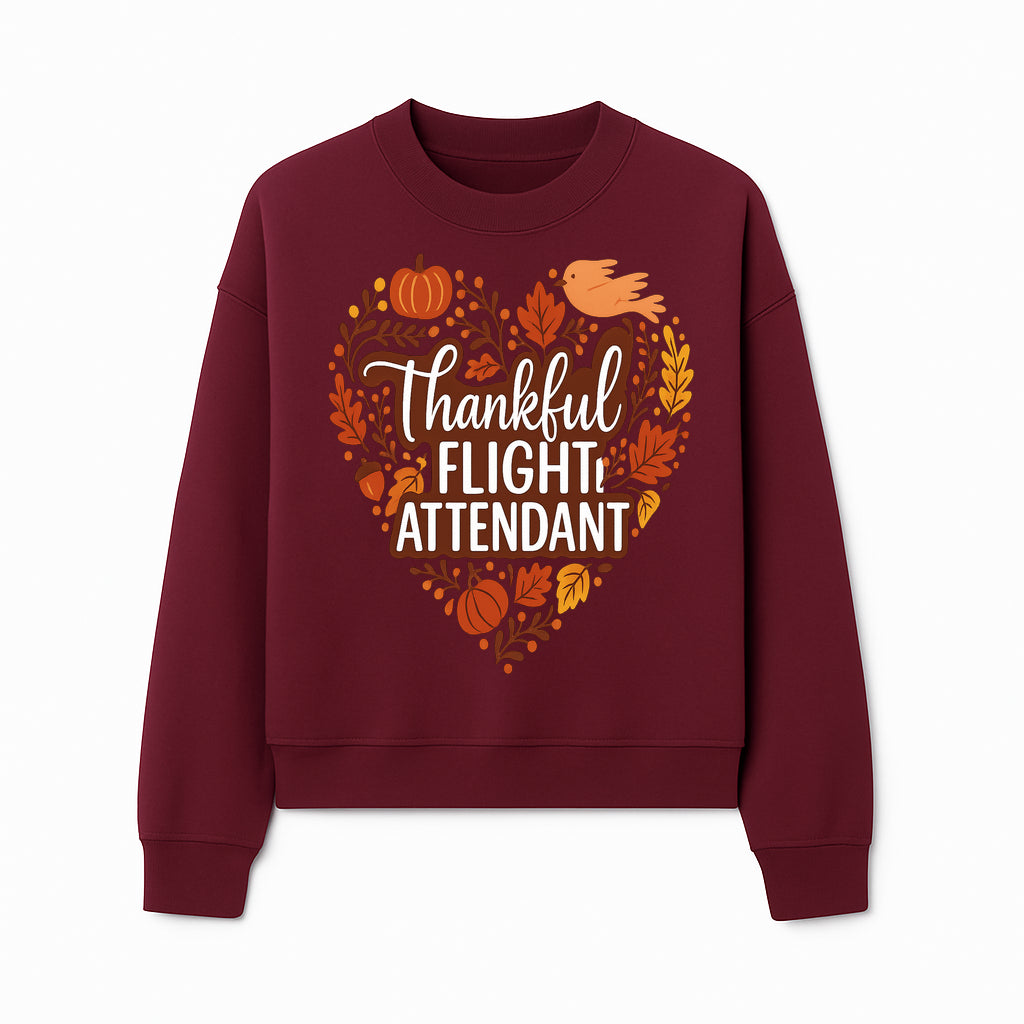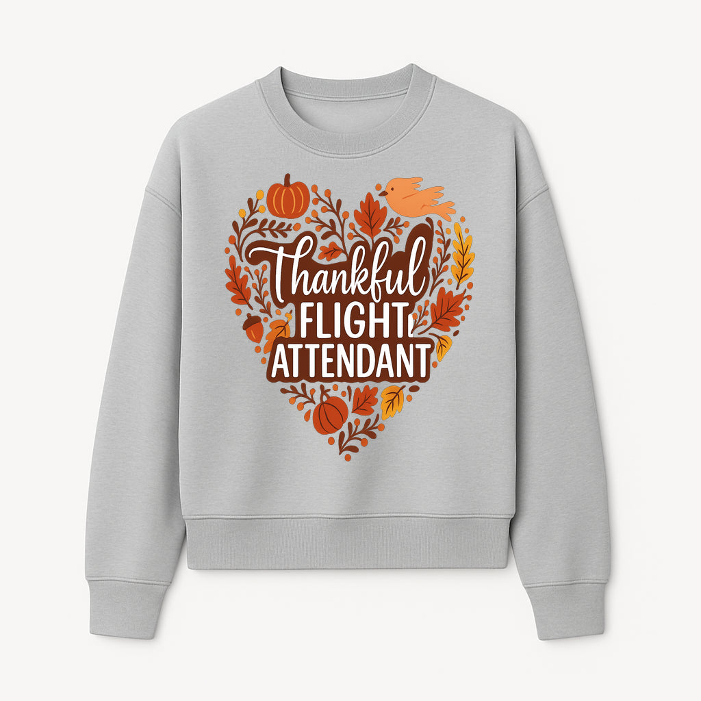 Thankful Flight Attendant Fall Thanksgiving Heart Art Print, Autumn Decor, Airline Crew Gift, Nature-Inspired Wall Art, Seasonal Home Decor - Sweatshirt