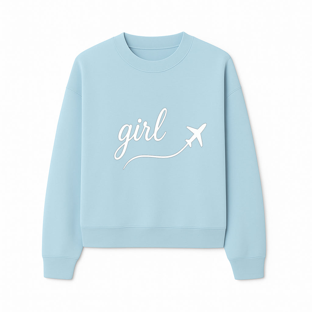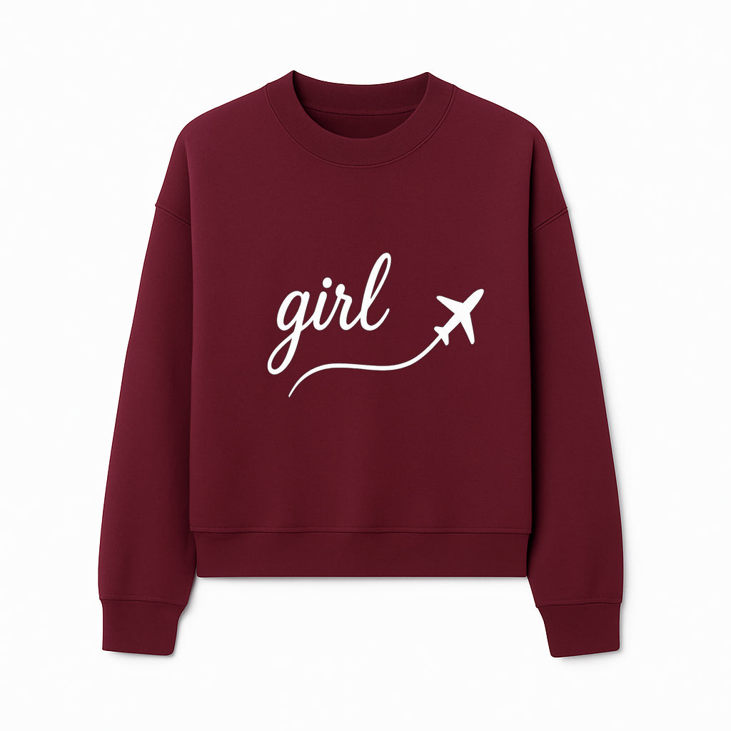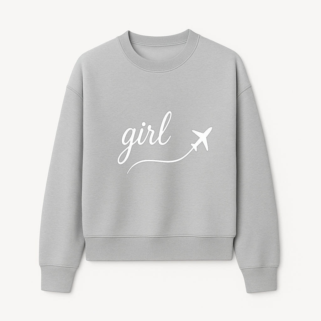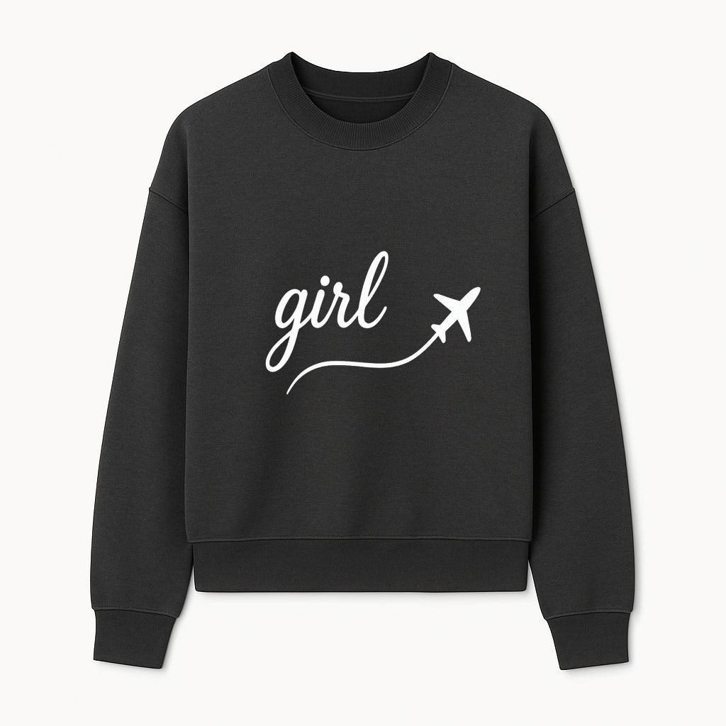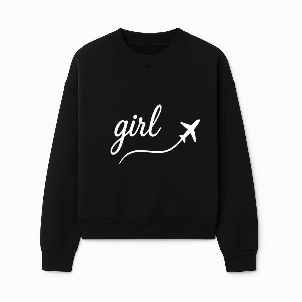 Traveling Girl Wall Art Print | Airplane Decor for Adventurous Girls | Inspirational Home Decor - Sweatshirt
