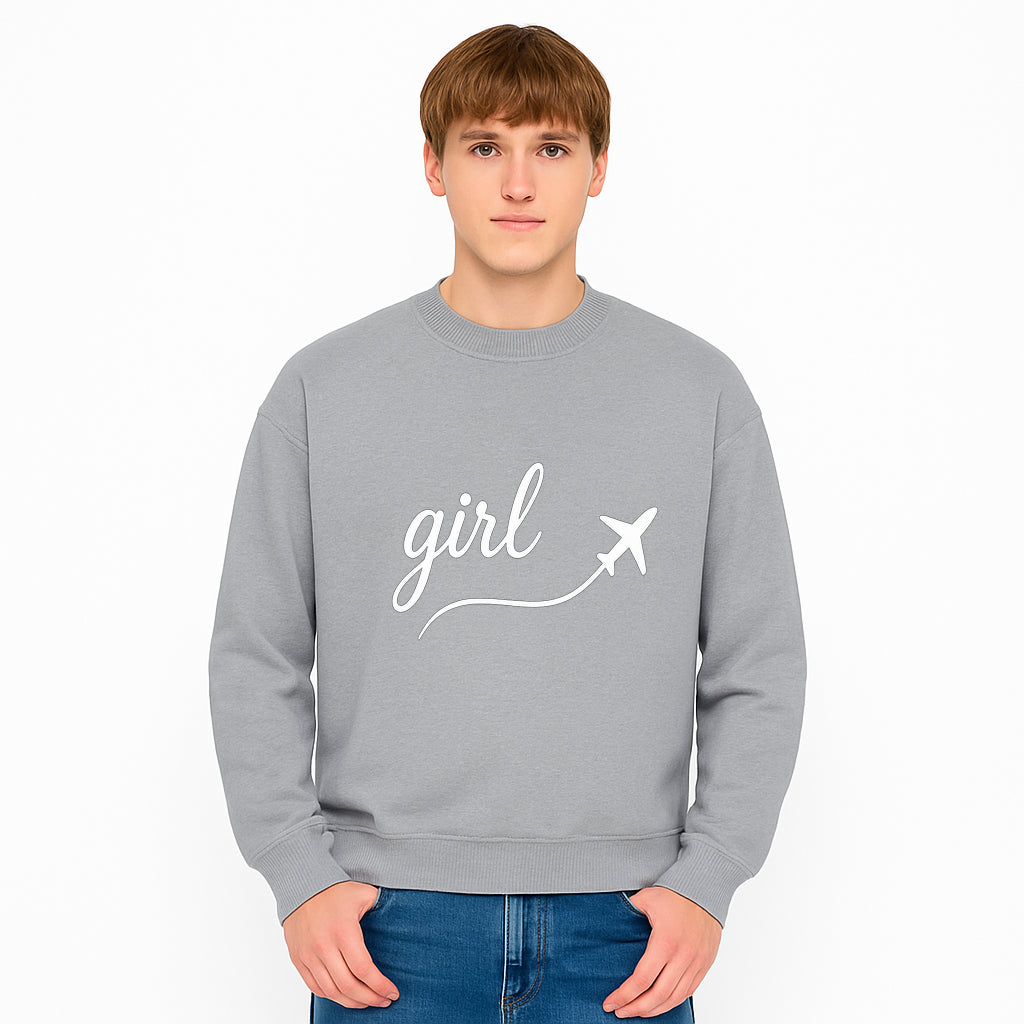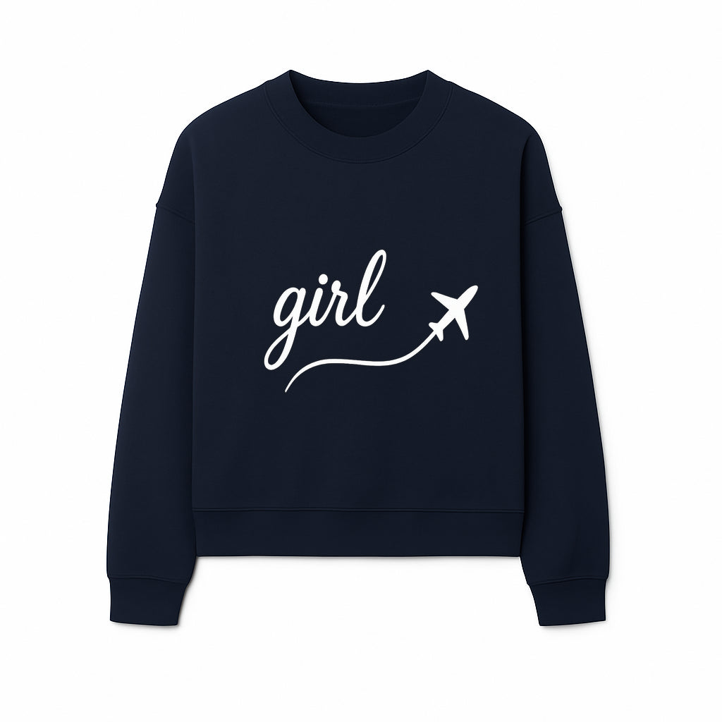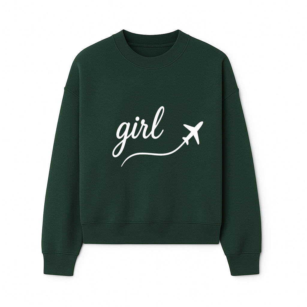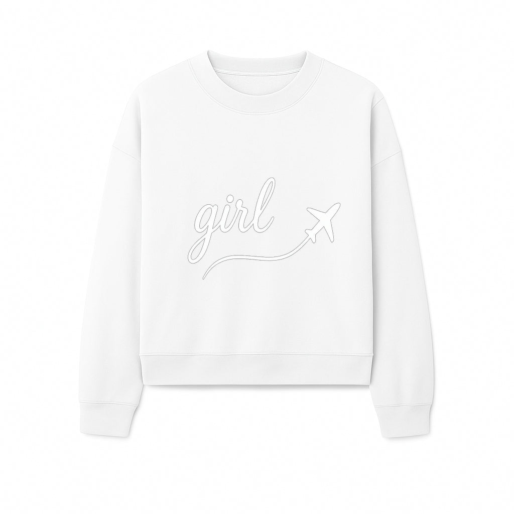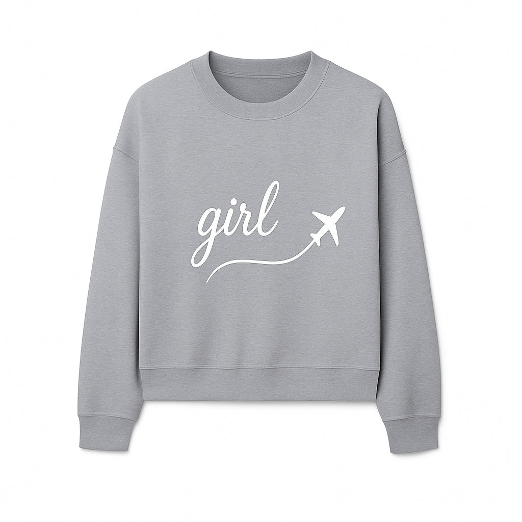 Traveling Girl Wall Art Print | Airplane Decor for Adventurous Girls | Inspirational Home Decor - Sweatshirt