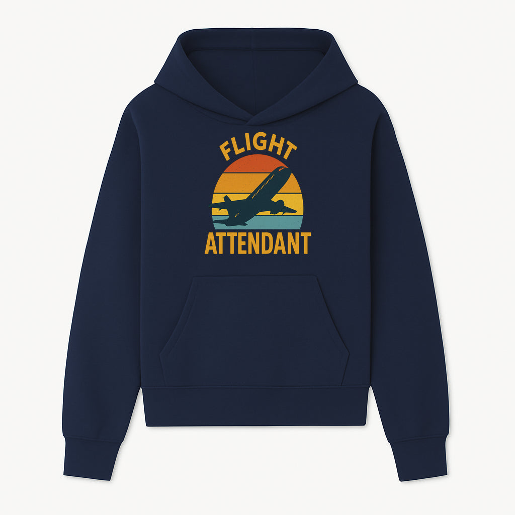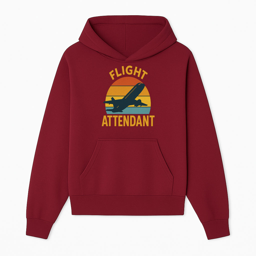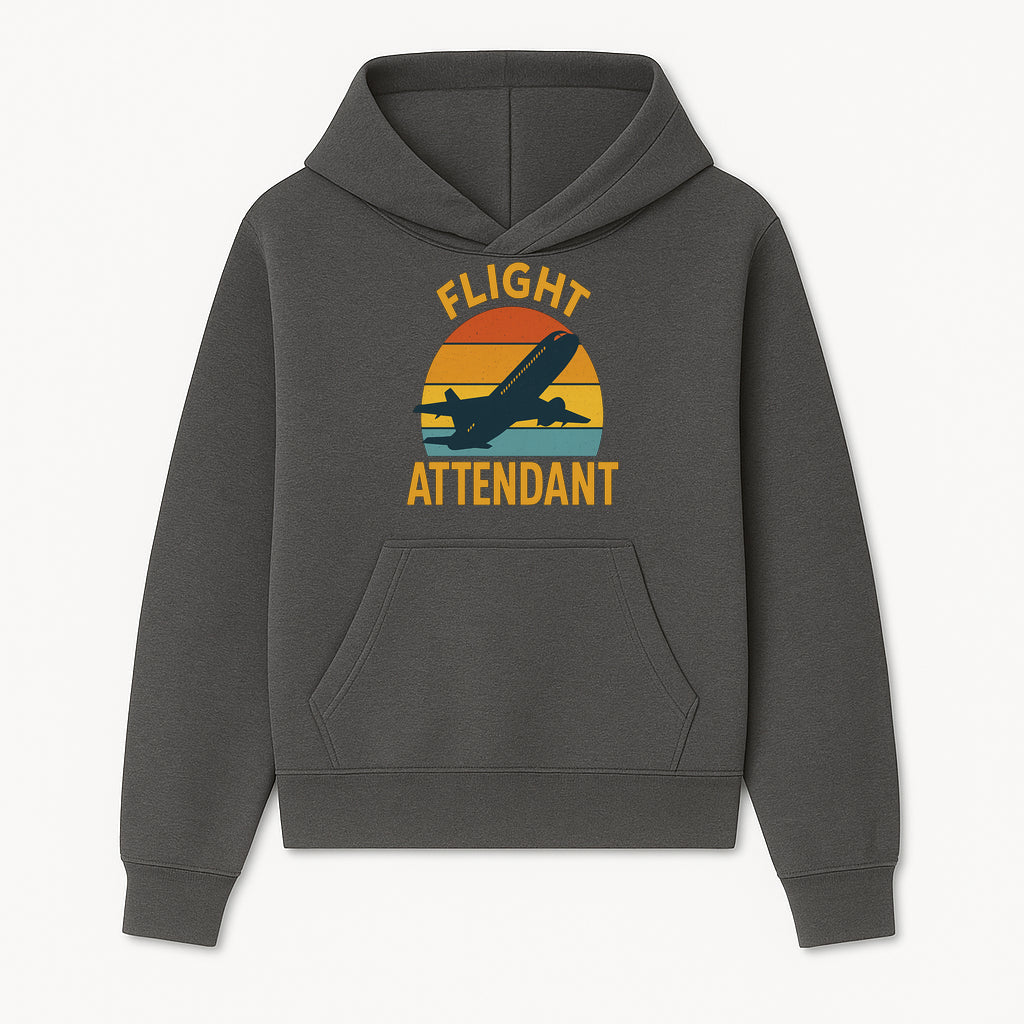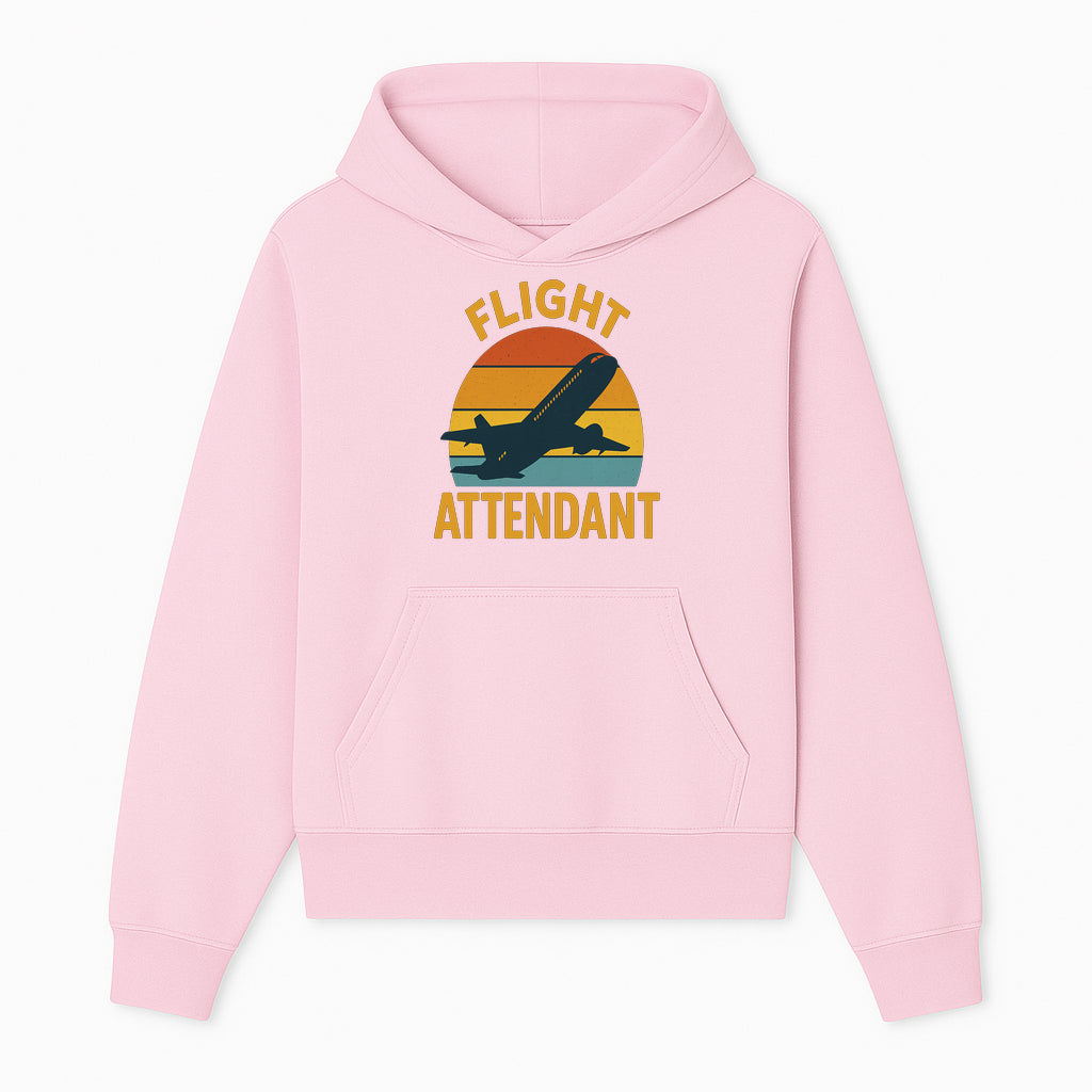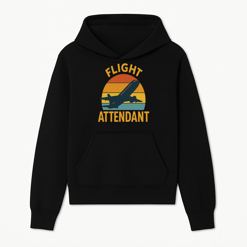 Vintage Flight Attendant Retro Airplane Sunset Graphic Tee | Travel Lover Gift | Airline Crew Apparel - Hoodie