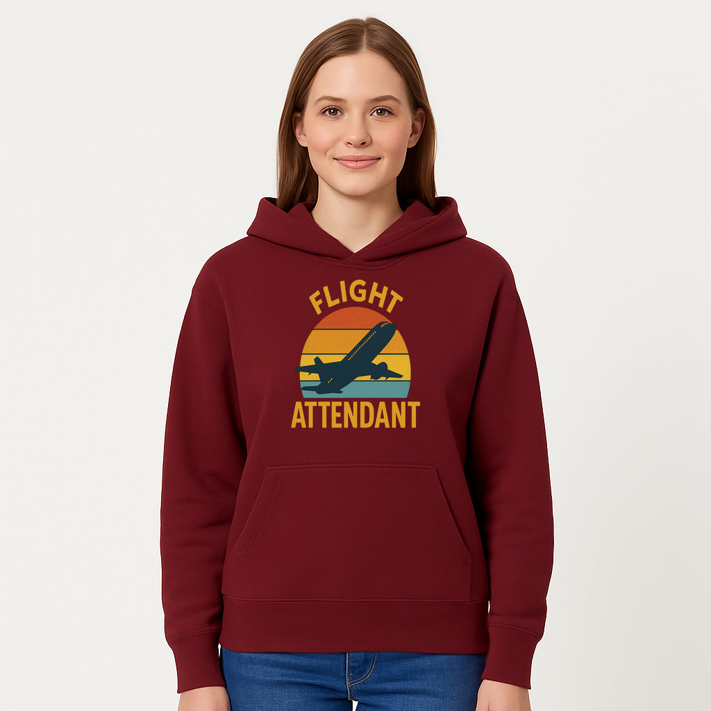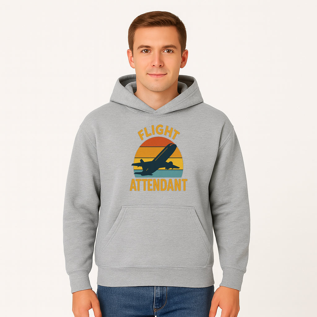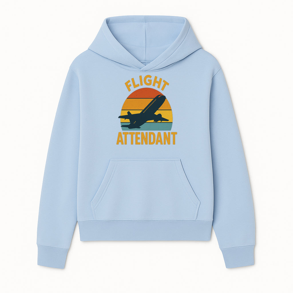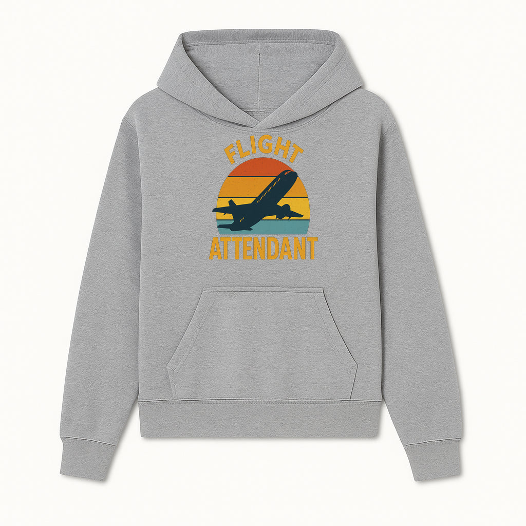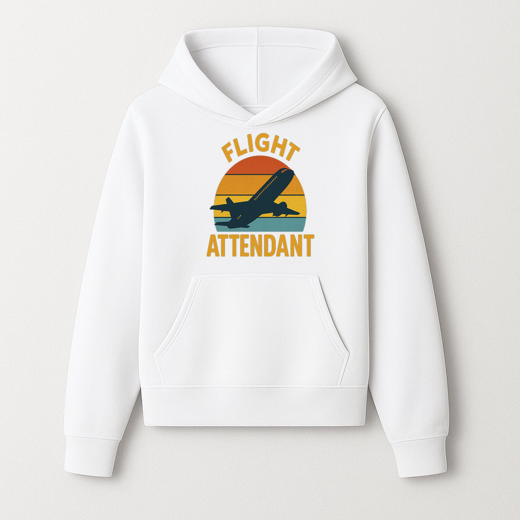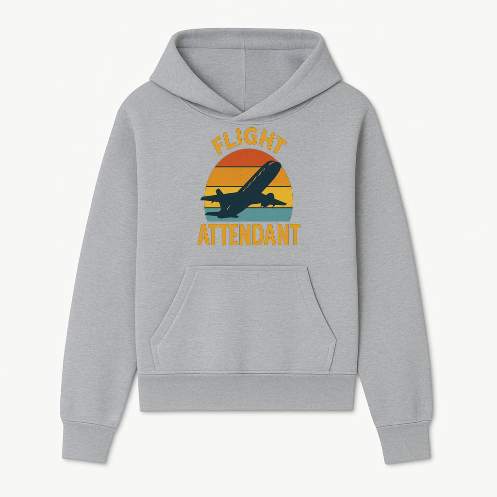 Vintage Flight Attendant Retro Airplane Sunset Graphic Tee | Travel Lover Gift | Airline Crew Apparel - Hoodie