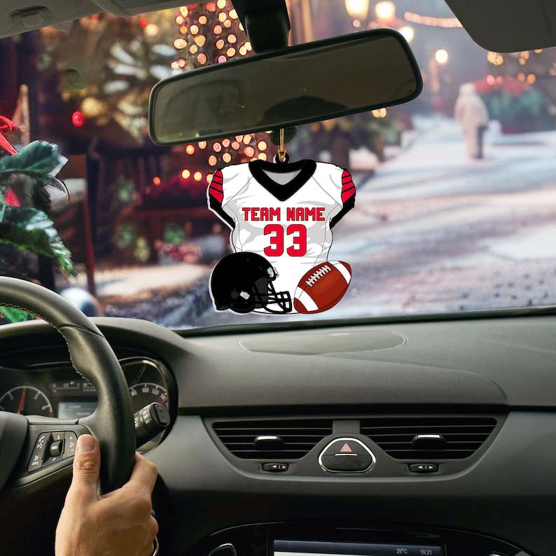 Personalized American Football Uniform 2D Flat Ornament NOT 3D, Football Helmet And Ball, Gift For Football Player, Christmas Fan Ornament