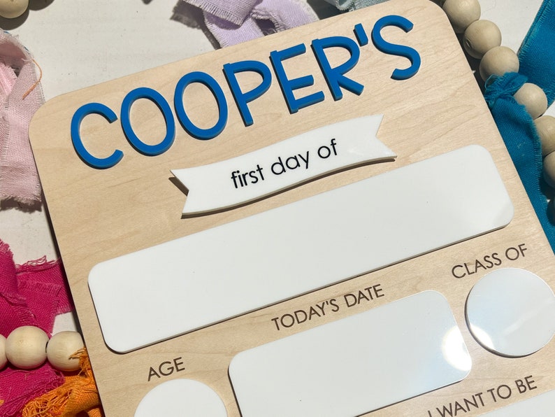 Introducing our delightful Daisy Style First Day of School Dry Erase Sign! Crafted with love from sturdy 1/4" maple wood and adorned with charming acrylic accents, this sign is a perfect way to capture your child's first day of school memories.