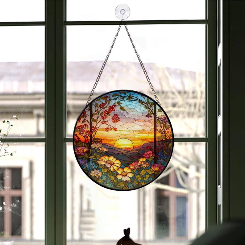 Sized at 6.4 inch and 7.85 inch , this captivating glass suncatcher effervesces with brilliance in the sunlight, adorned with a vibrant hummingbird and flowers in a kaleidoscope of hues. Every piece is meticulously hand-soldered and reinforced with zinc strips along the outer edge, ensuring its lasting strength. Thoughtfully, two secure hanging hooks are seamlessly incorporated at the top for effortless display.