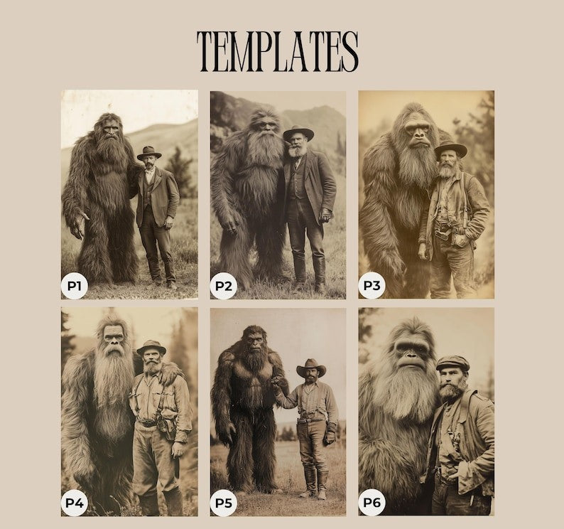 Custom Explorer Portrait with Cryptid, 1890s Wilderness Art for Adventurers and Mythological Creature Enthusiasts