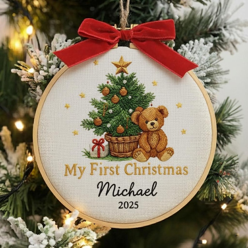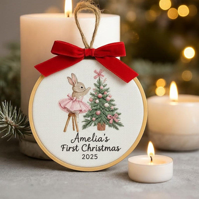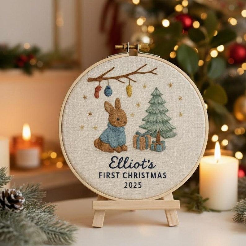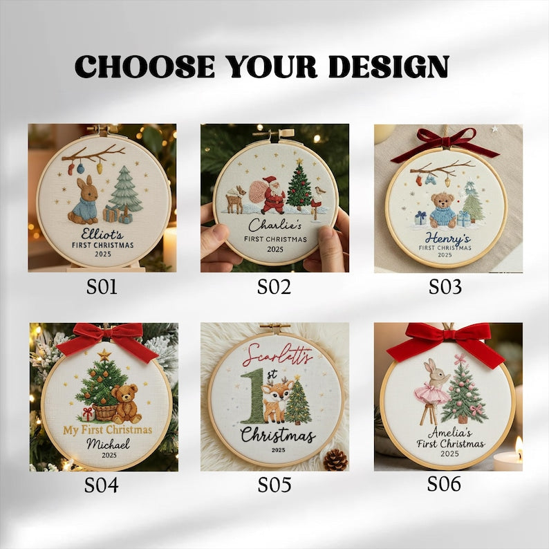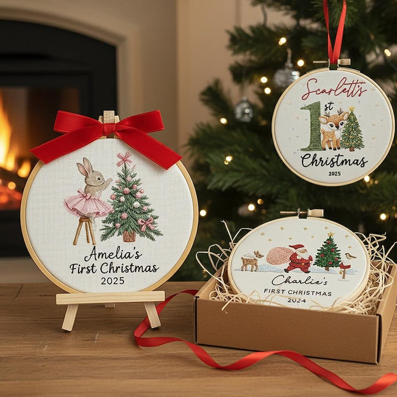 Celebrate this holiday season with a custom embroidered Christmas hoop ornament! 🎁✨ Choose from 3 festive designs and personalize with your family name, year, and individual names. A beautiful keepsake that makes the perfect Christmas gift.