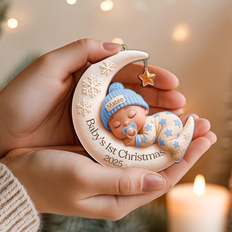 Baby s First Christmas Ornament Custom Moon Acrylic Keepsake, Personalized Newborn Gift, Unique Holiday Decoration, Baby Gift Idea