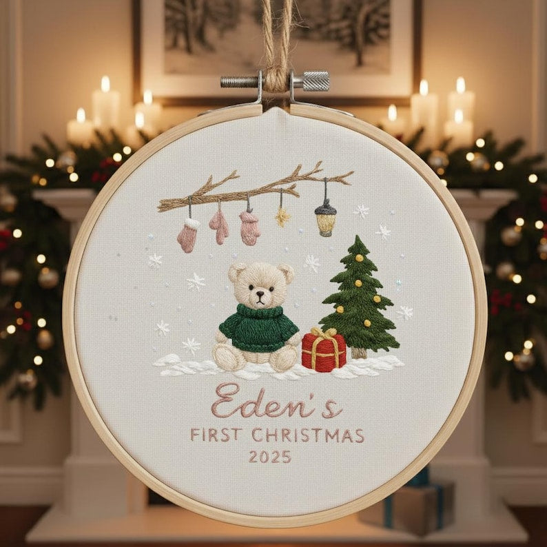 Celebrate this holiday season with a custom embroidered Christmas hoop ornament! 🎁✨ Choose from 3 festive designs and personalize with your family name, year, and individual names. A beautiful keepsake that makes the perfect Christmas gift.
