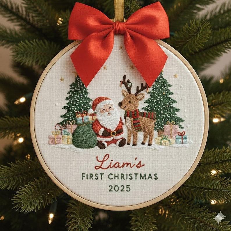 Personalized Baby's First Christmas Embroidered Ornament Keepsake 2025, Baby gift Christmas, First Christmas Family 2025