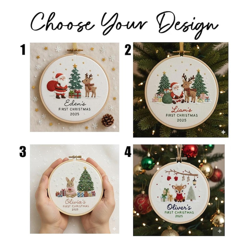 Celebrate  this holiday season with a custom embroidered Christmas hoop ornament! 🎁✨ Choose from 3 festive designs and personalize with your family name, year, and individual names. A beautiful keepsake  that makes the perfect Christmas gift.