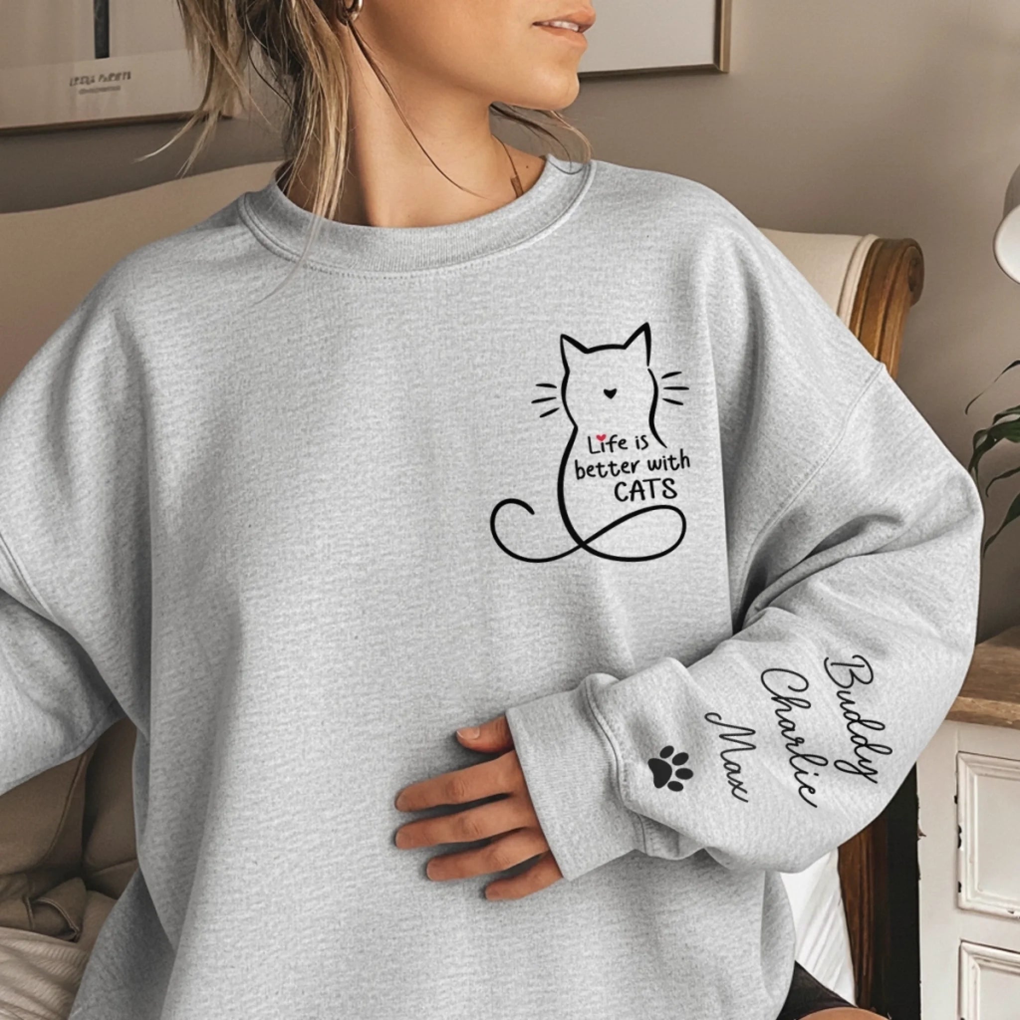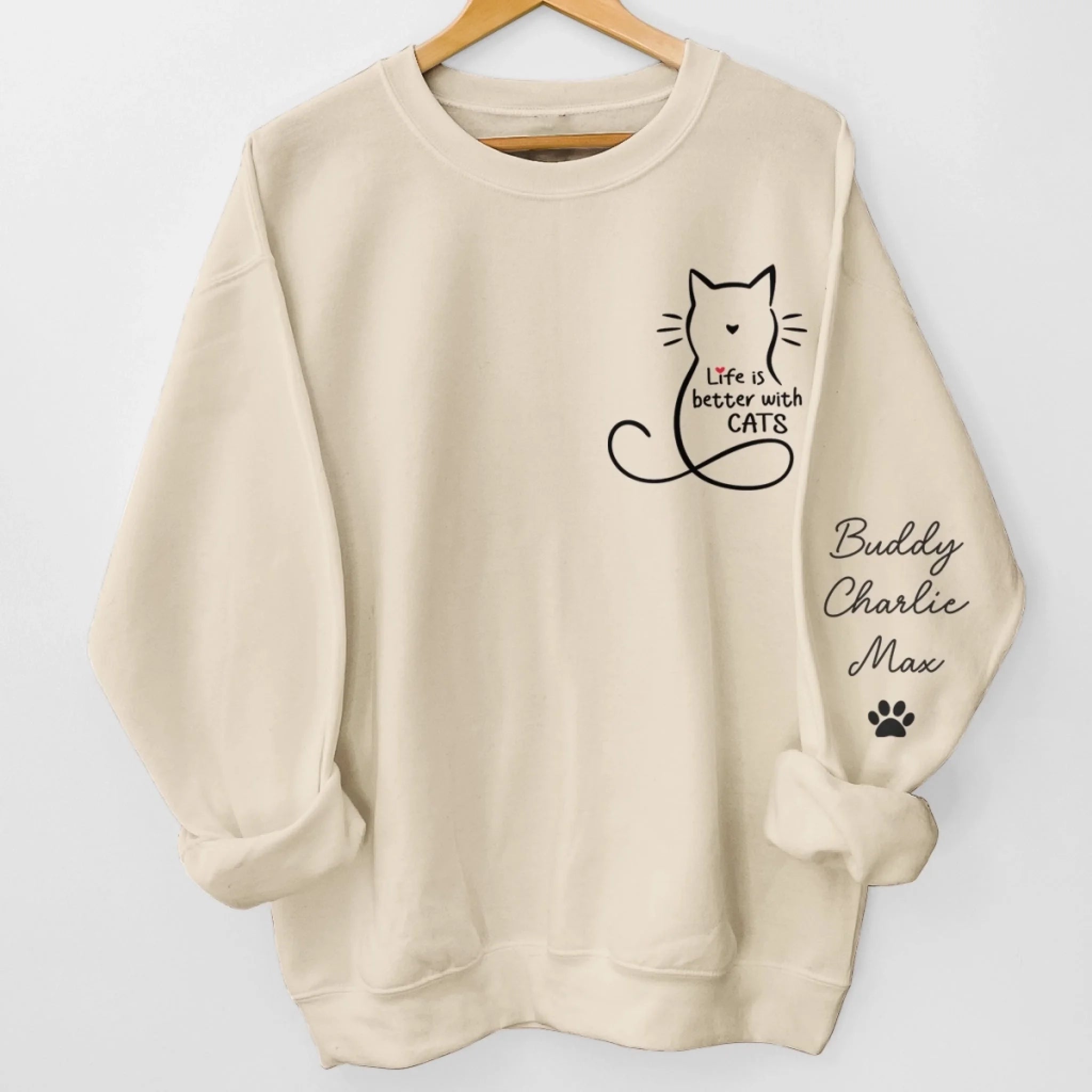 Life Is Better With Cats - Personalized Sweatshirt - Gift For Cat Lovers, Cat Owner