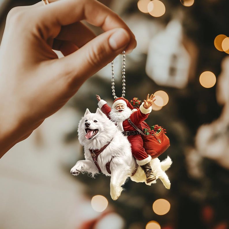 2D Flat Funny Samoyed Ornament, Samoyed Dog, Santa and Dog Ornament, Car Hanging Ornament, Christmas Gift, Dog Lover Gifts
