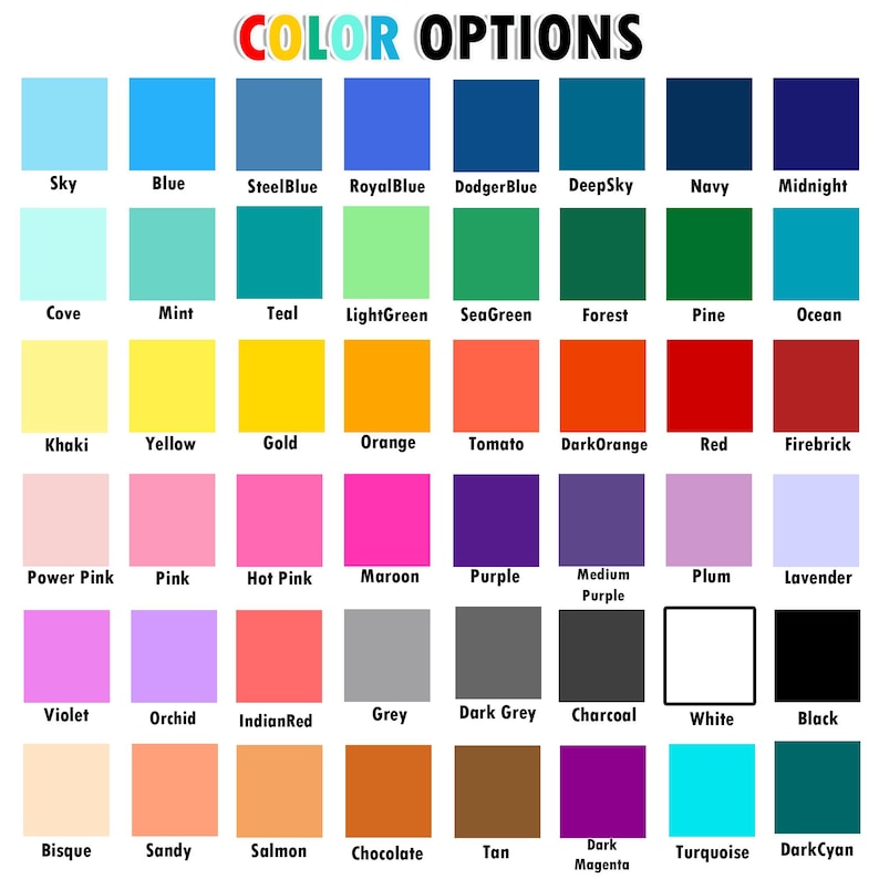 | YL | 20 in | 25 in | 17 in | 21 in |