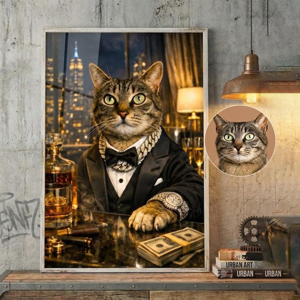Custom Pet Portrait, Dog Portrait Hip Hop, Cat Portrait Canvas,