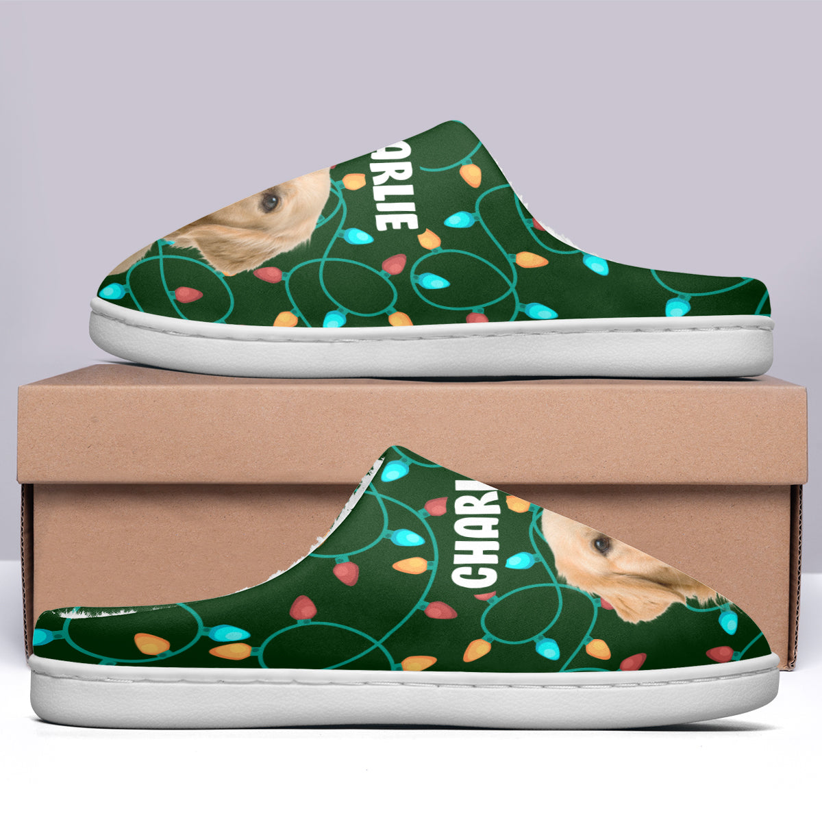 Custom Pet's Photo Christmas Light - Personalized Fleece Slippers - Christmas Gift For Pet Owners, Pet Lovers