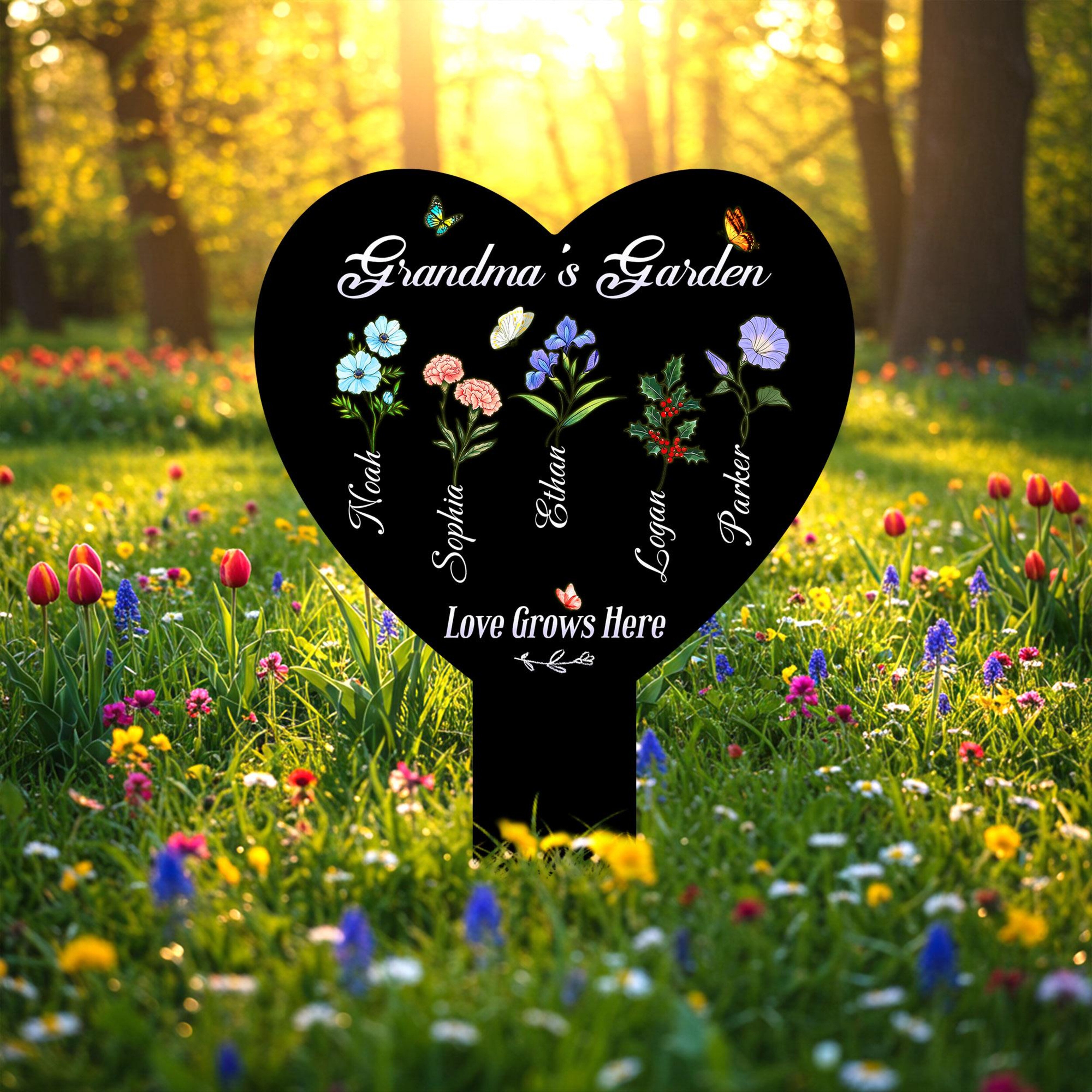 Personalized Birth Flower Metal Garden Stake, Mother's Day Gifts for Grandma, Grandkids Names, Nana's Blessings, Garden Marker Botanical Art