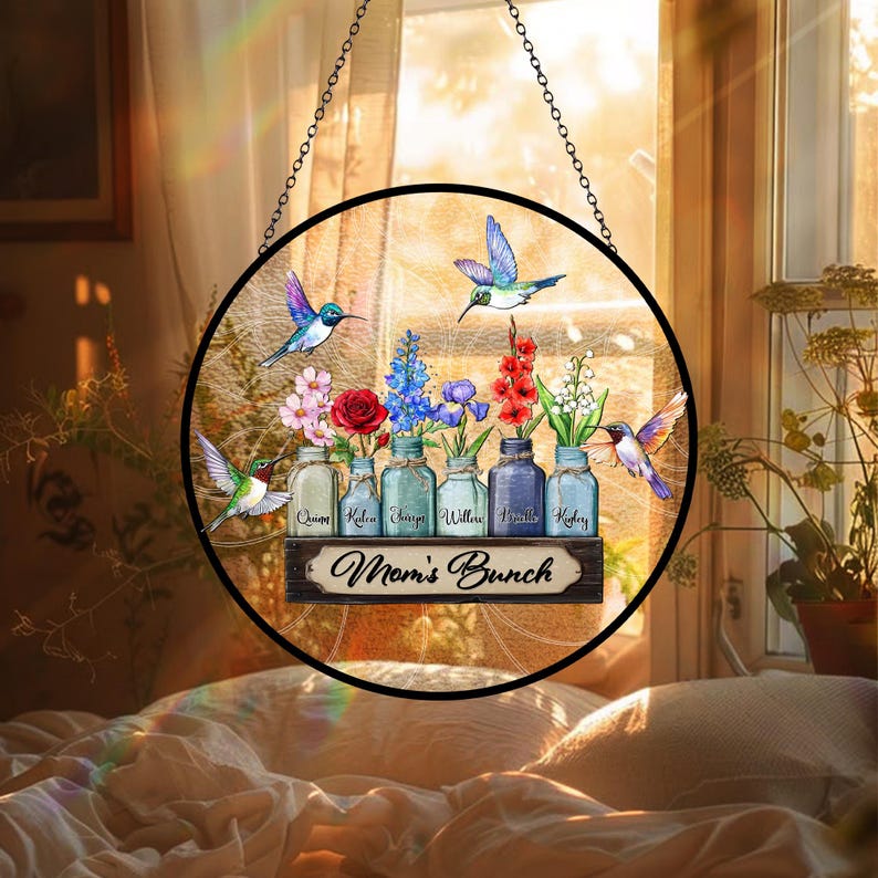 Personalized Mother's Day Suncatcher, Custom Birth Flower, Mom s Bunch Gift, Mason Jar Window Hanging, Mother's Day Gift, Nana's Blessings