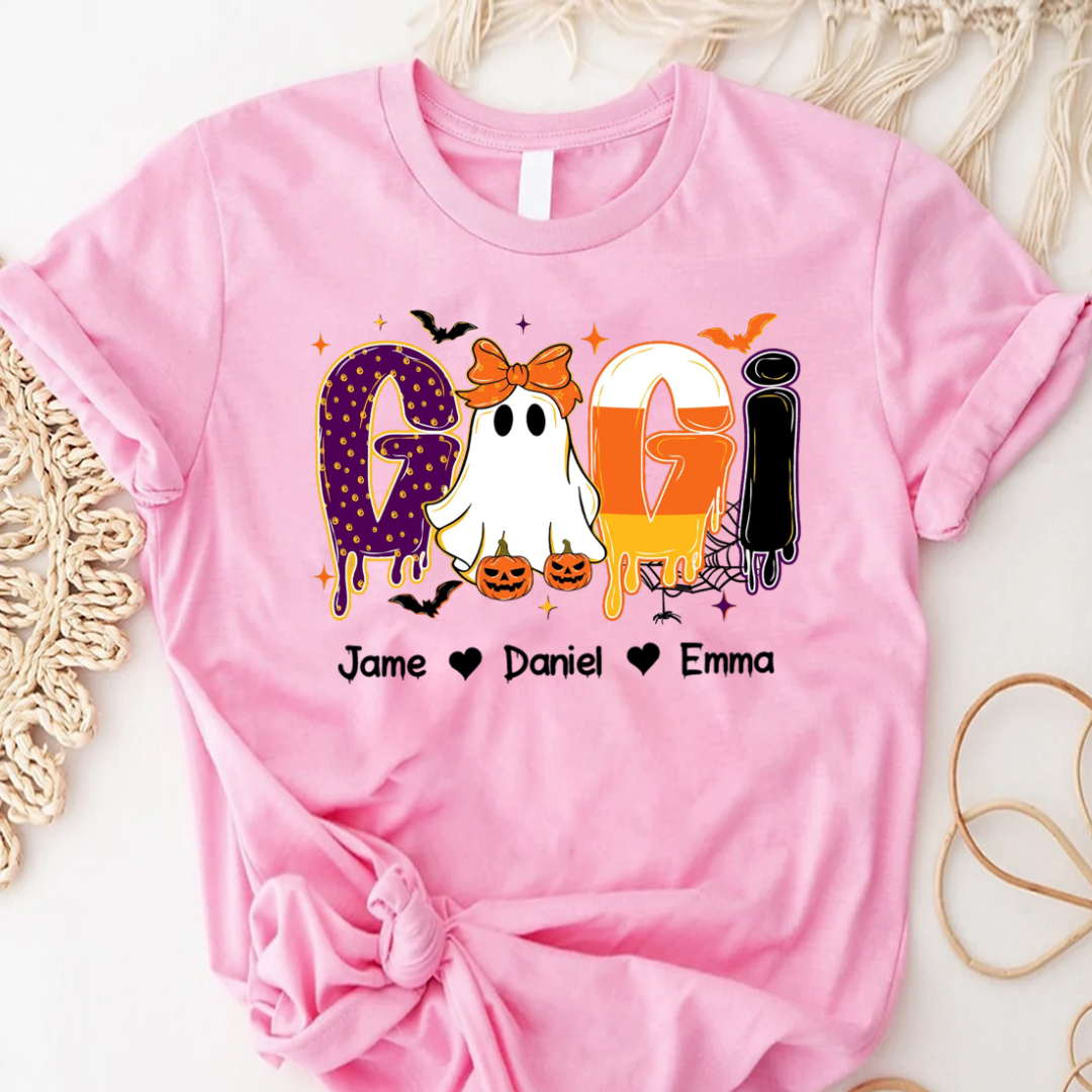 Preppy Halloween Gigi Cute Ghost Grandma and Grankids Shirt - Personalized Apprel - Gift For Grandma, Halloween Gift