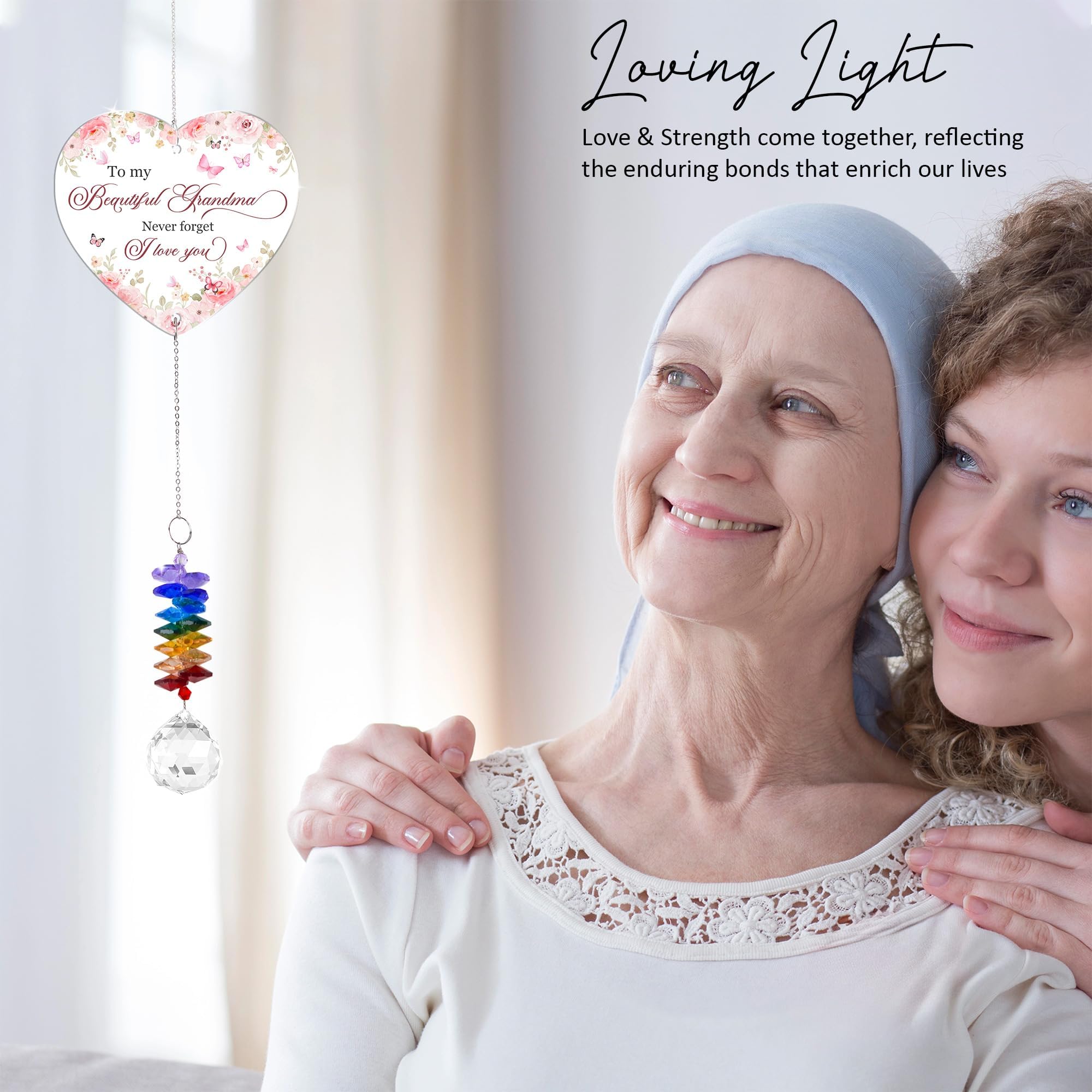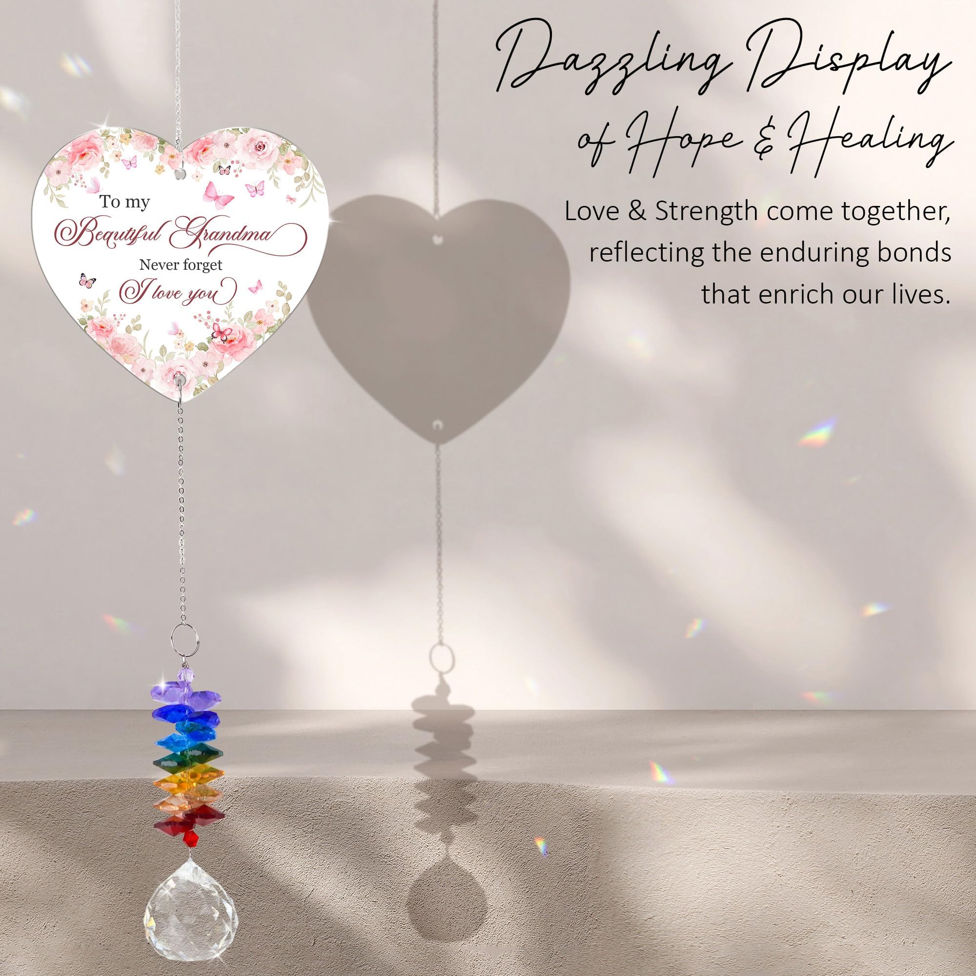 This crystal suncatcher beautifully refracts light, creating radiant rainbow reflections that brighten any space.