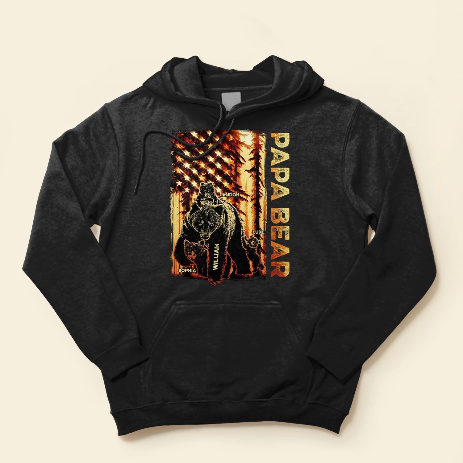 Papa Bear Forest Us Flag - Personalized Shirt, Gift for Father, Grandpa, Father's Day