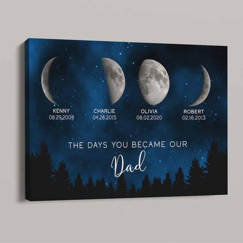 Personalized Custom Birth Moon Phase Galaxy Night Canvas Frame, The Days You Became Our Dad Canvas, Father's Day, Gift For Dad, Grandpa