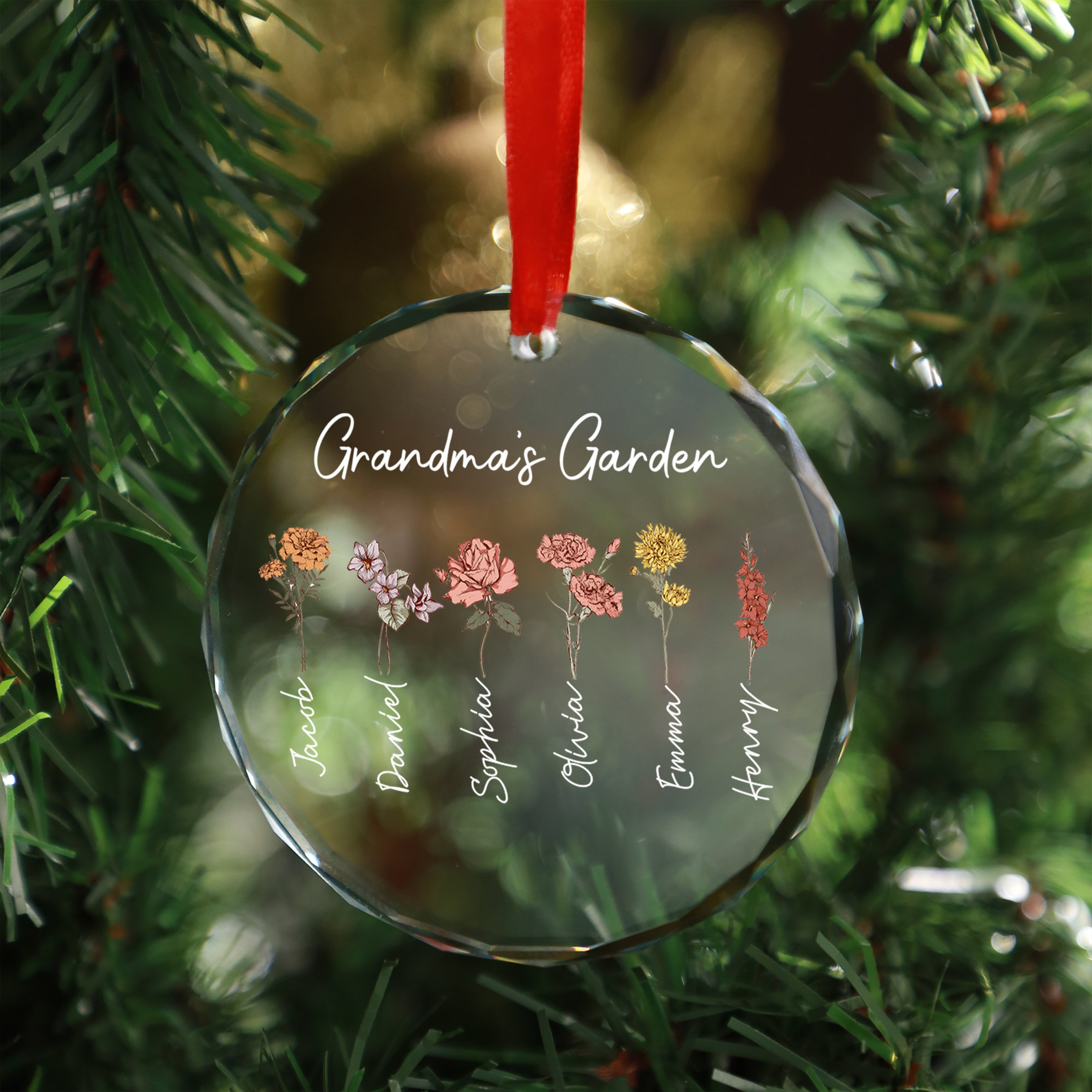 Grandma's Garden - Personalized Crystal Ornament - Christmas Gift For Grandma