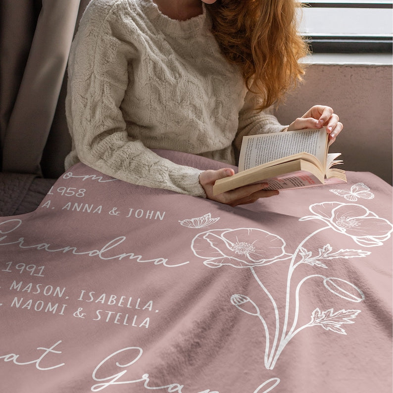 Great Grandma Blanket with Grandkid Names Grandparent Gift Grandmother Custom Throw Blanket Mother in law Mothers Day Christmas Birthday