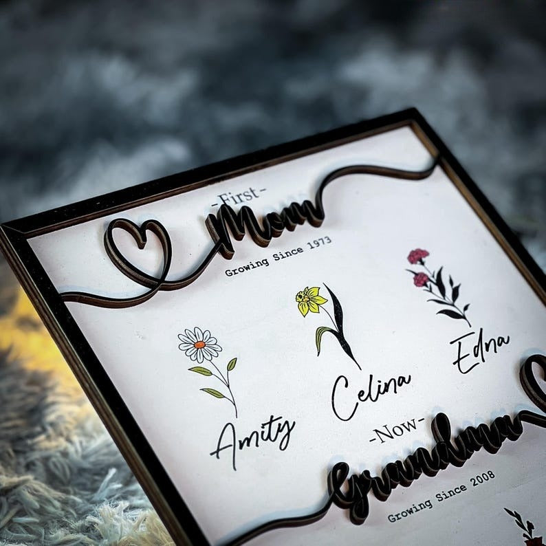 Nana Gift Personalized Flower Birth Month Garden Wooden Sign Frame, Mother Day Gift, First Mom Now Grandma Gift, Mom Gift, Mom Birthday Gift
