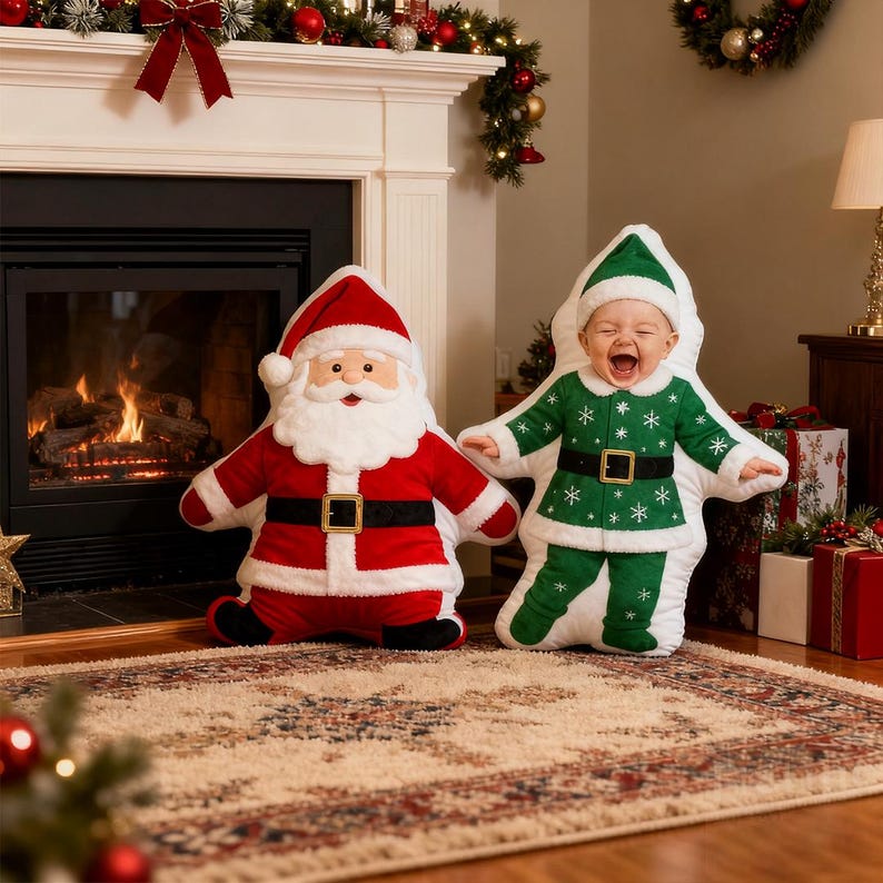 Custom Baby Photo Pillow Personalized Christmas Santa Cushion, Holiday Elf Doll Pillow, Unique Baby Gift Keepsake, Christmas Decor