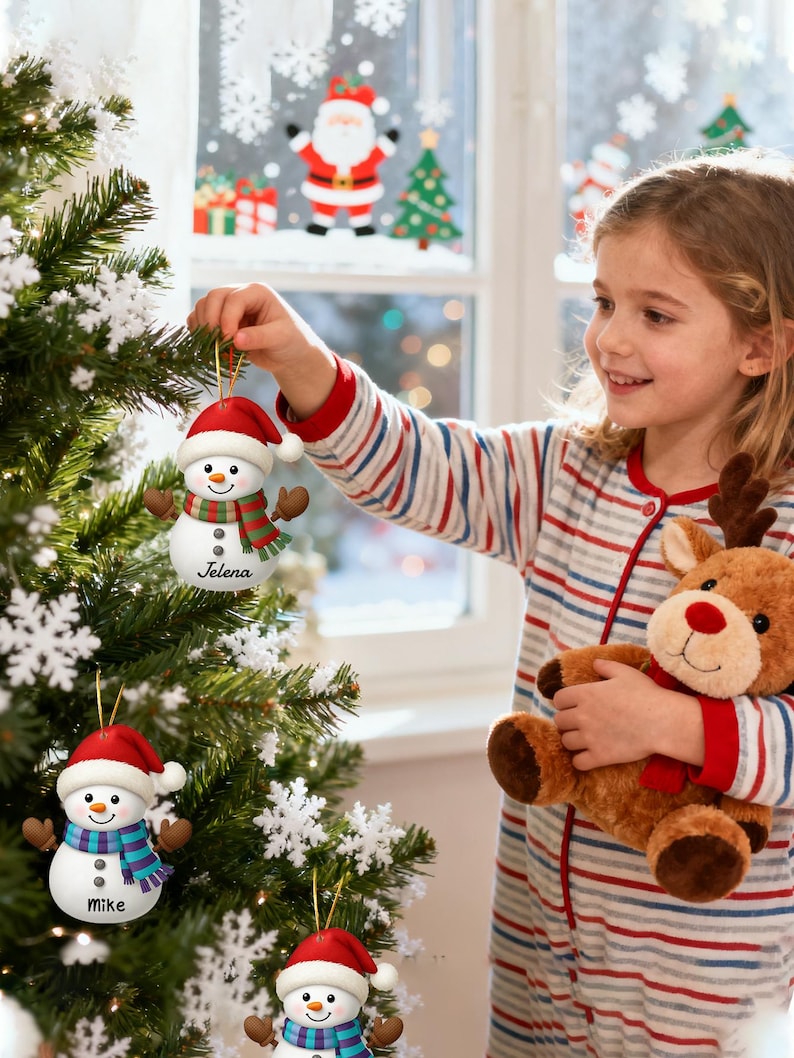 Personalized Snowman Christmas Ornaments, Custom Name Snowman Decor, Customizable Snowman Christmas Tree Decorations, Christmas, Family, Kid
