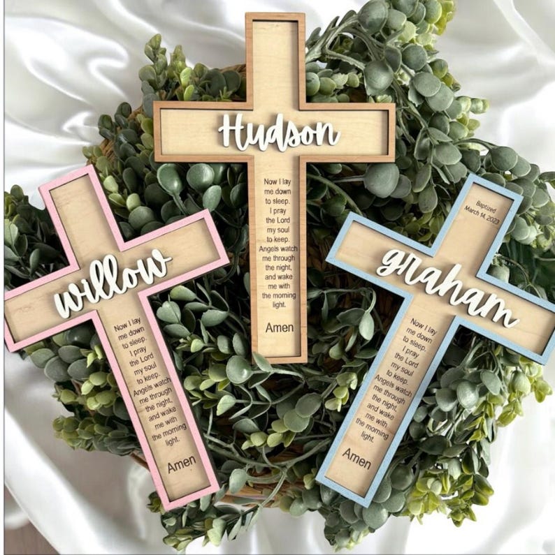 Personalized Wooden Baptism Cross/Baby Shower/Nursery Decor/Custom Baptism Gift/Easter Decor/Baptism Gift/Prayer Cross/Christening gift