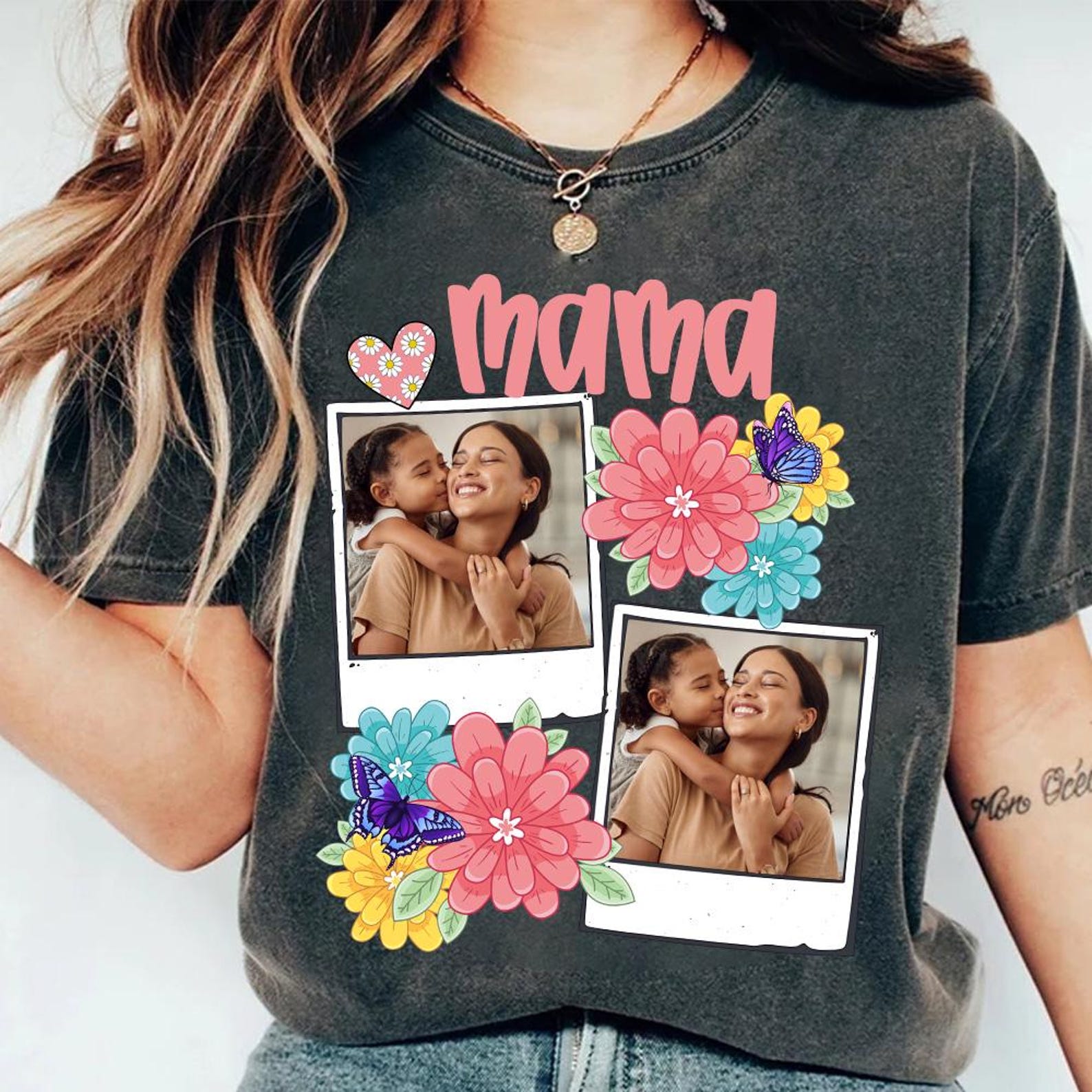 Custom Mama Kids Photo, Mothers Day Mom Floral Flowers Shirt, Hand drawn, Gift For Mom